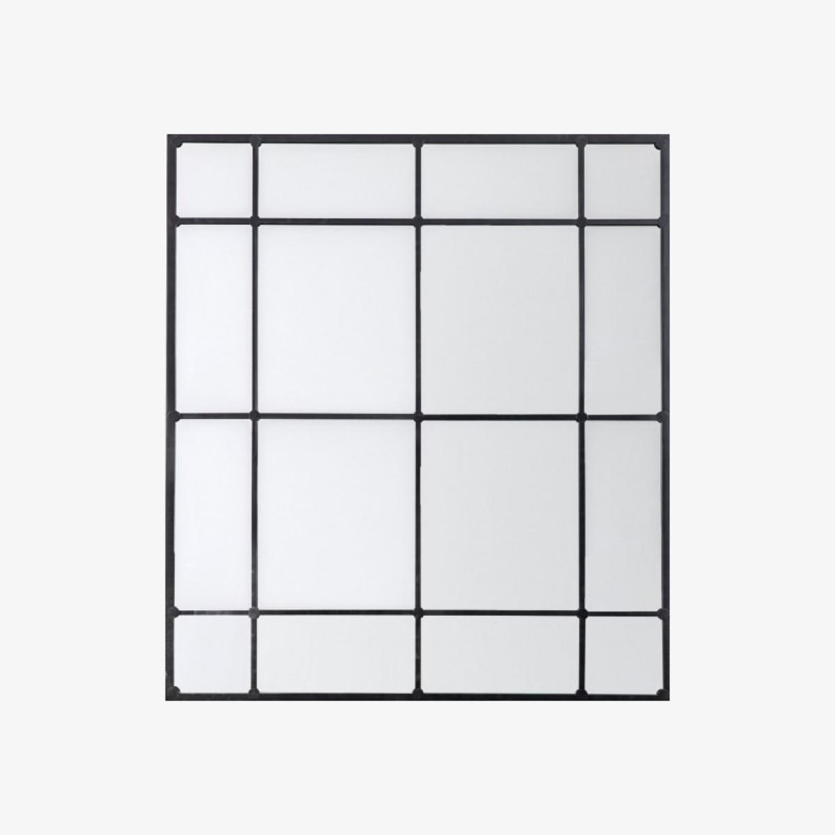 Shape: Rectangle. Material:Iron / Glass. Colour/Finish: Black. Boldly chic this large window style mirror will add a touch of refined elegance to any interior. Divided into panes with black graphic lines this mirror will enhance your space, making it feel larger and lighter.