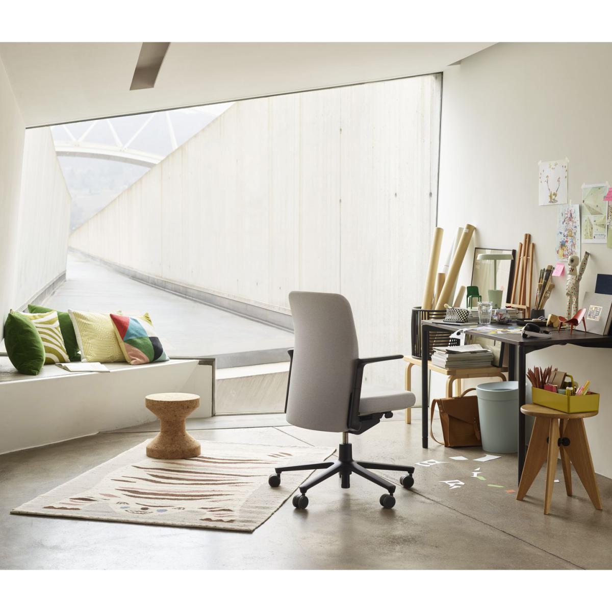 Treat yourself to an ORIGINAL iconic piece by Vitra. An original will always hold its value. It will stay with you for your whole life and will outlive you, being passed on to the next generation. A self-taught architect with a passion for industrialising buildings, Jean Prouvé (1901 - 1984) is now considered a leading architect and one of the greatest designers of the 20th century, on a par with Le Corbusier and Charlotte Perriand. A pioneer, Prouvé played a major role in the development of mass production techniques in the European post-war modernist movement. Jean Prouvé developed a "constructive thought" based on a logic of series manufacturing and functionality to create an aesthetic that’s purified of all artifice. The designer has a wide portfolio of designs ranging from prefabricated homes to furniture for offices, classrooms and interiors. Jean Prouvé's creations have become icons of the post-war period and have spanned the whole century. During the Second World War, due to the shortage of metal at the time, Jean Prouvé devoted himself more and more to working in wood. Designed in 1941, the Solvay stool bears the inimitable signature of the French designer and engineer: its clear building principles are characteristic of the work of Jean Prouvé. Very solid, it consists of a thick solid wooden seat resting on three legs made of the same wood. These elements are interconnected by sturdy joining elements made of bent sheet steel. Available in different types of wood, this restrained stool, with its pure modernist style, adapts to the most diverse settings.