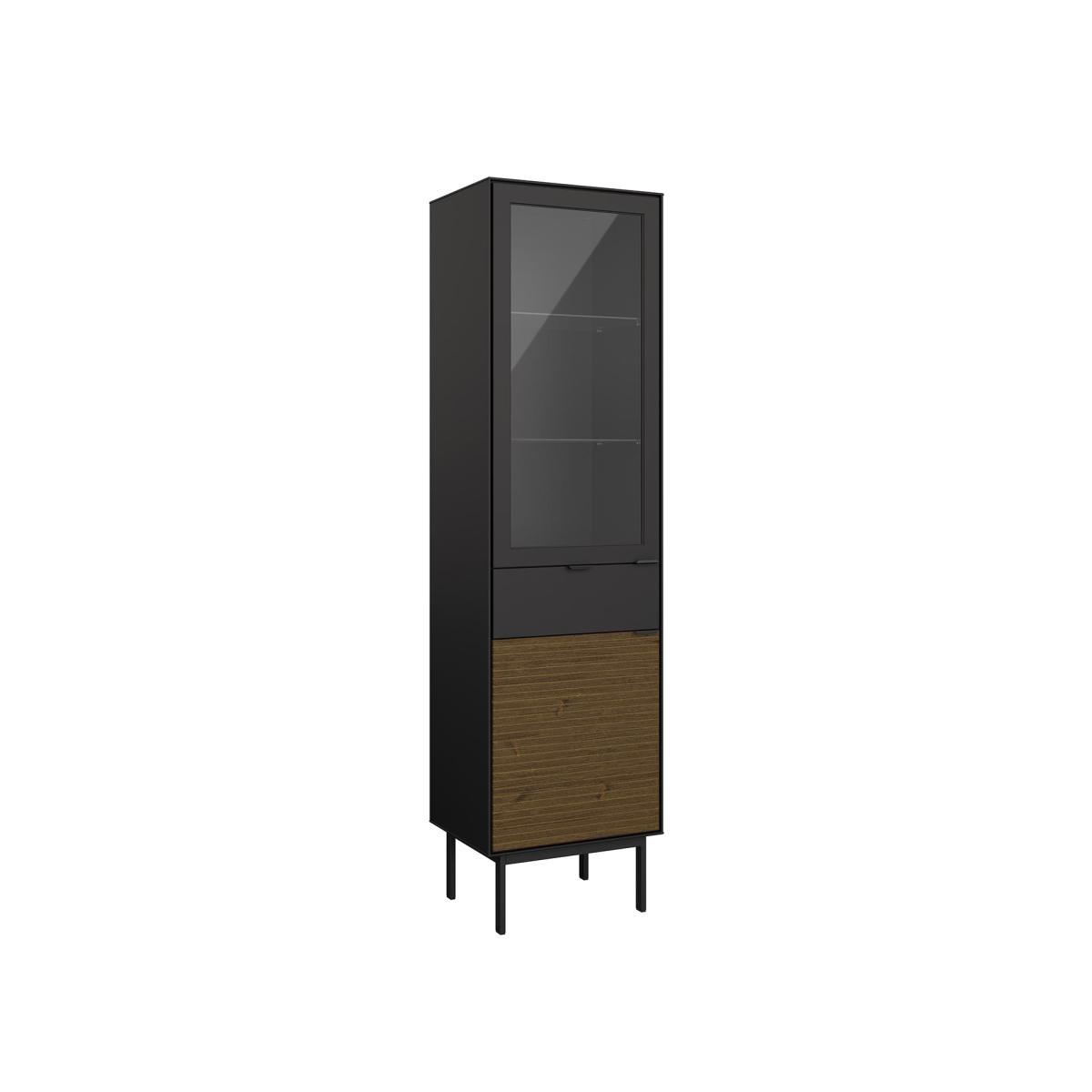 I’m a fan of this espresso-tone display cabinet for its slim, vertical profile and the mix of glass-fronted shelving with hidden storage below. Its black metal legs and dark finish suit contemporary, Scandi or industrial-inspired schemes without overwhelming a small room. For styling, use the top shelves to show off ceramics or coloured glass, adding small plants or a stack of art books for variety. Fit a slim LED strip inside to highlight your objects, then tuck away less-attractive bits in the lower cupboard. Placed beside a sofa or in a hallway, it acts as both a decorative focal point and practical storage.