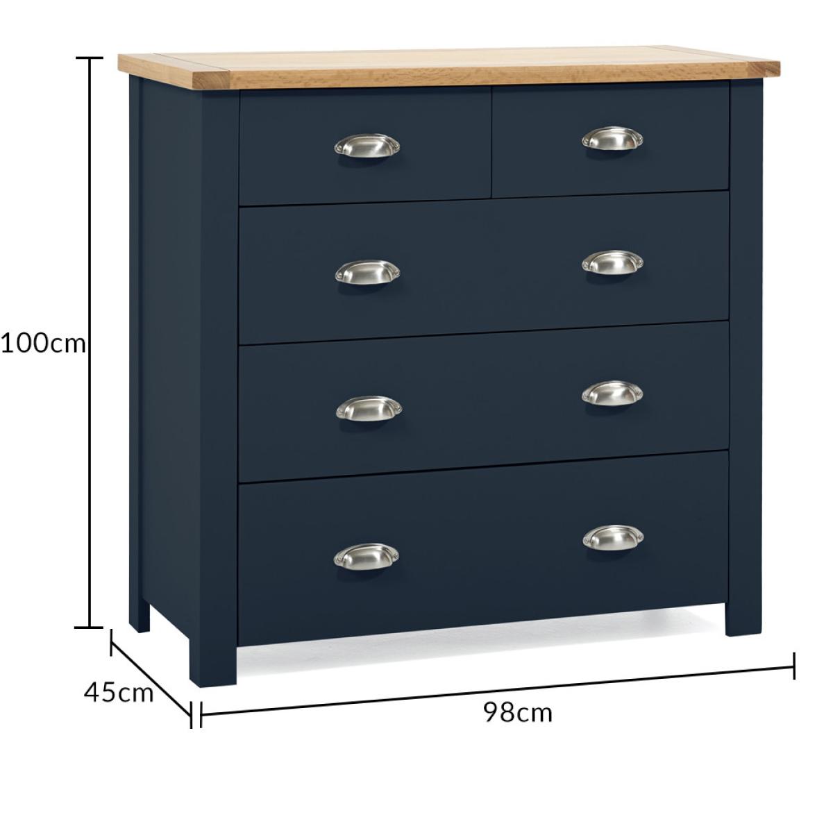 Somerset Oak and Blue 2 Over 3 Drawer Chest