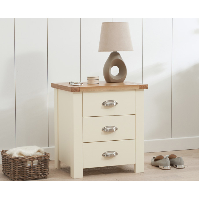 Somerset Oak and Cream 3 Drawer Bedside Table