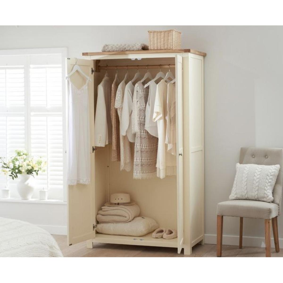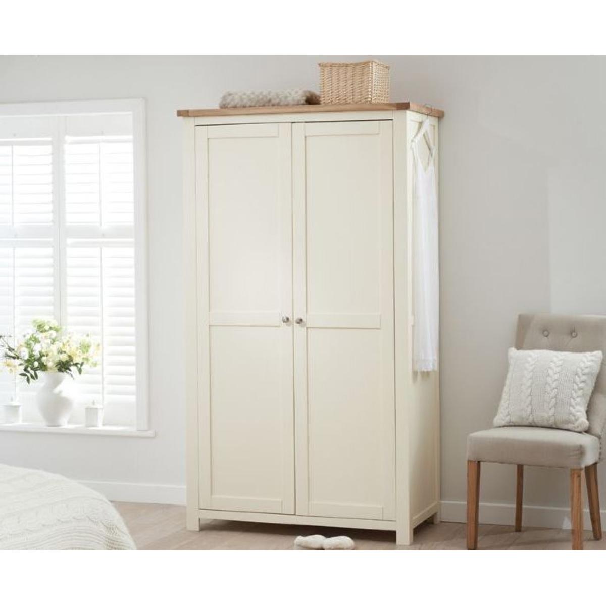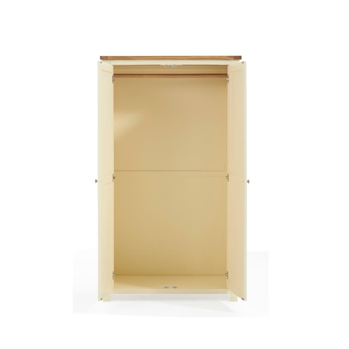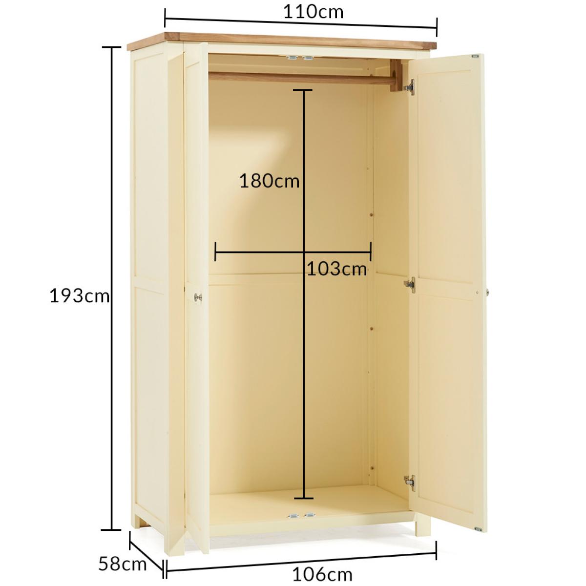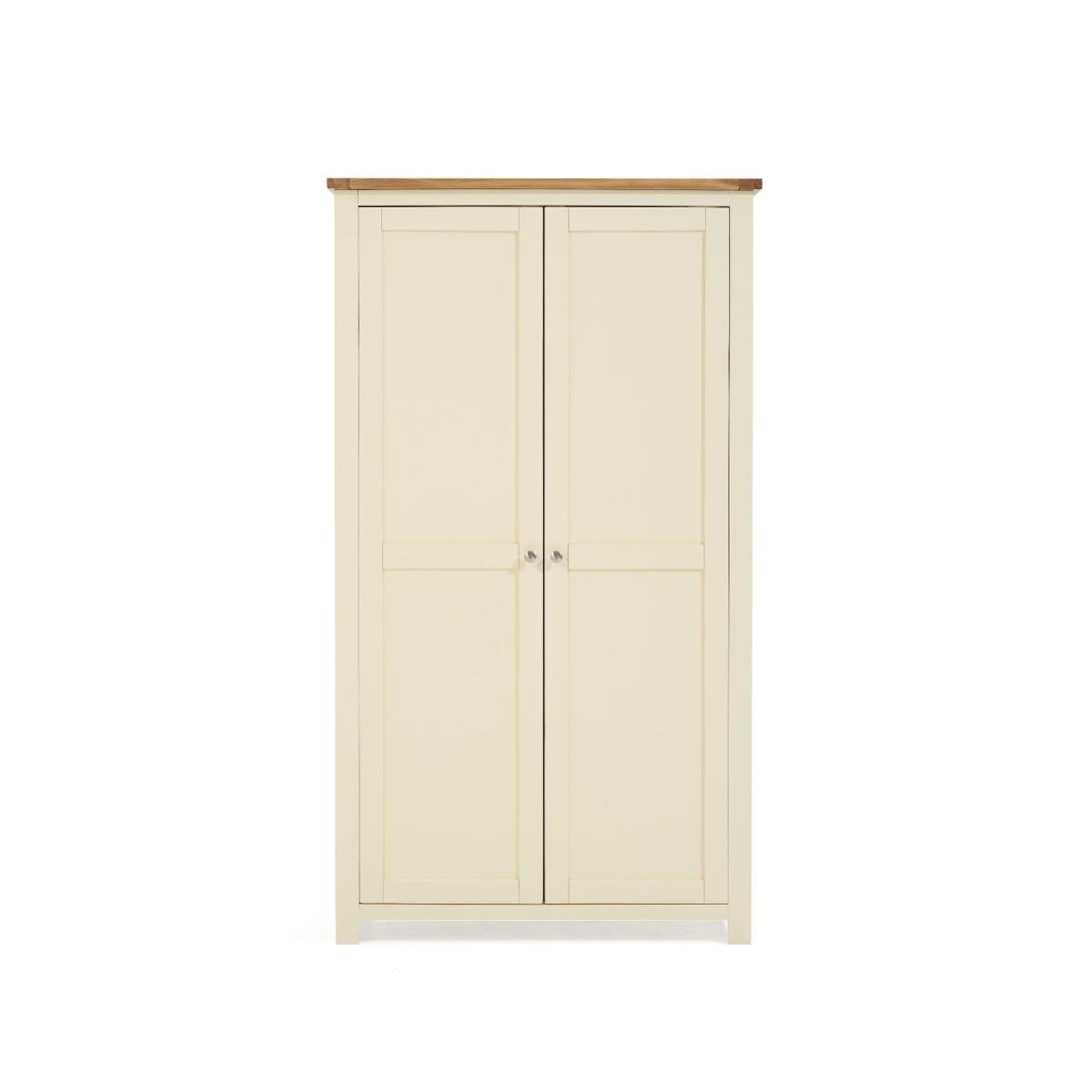 The Somerset Oak and Cream Two Door Wardrobe makes a chic impression in your bedroom. Featuring a classic design with a touch of contemporary style, the two door wardrobe is practical and resilient. The stylish wardrobe features a resilient solid hardwood frame finished with cream paint and is topped with veneer with solid oak edges and a clear lacquered finish. The Somerset Oak and Cream Two Door Wardrobe complements other items in the Somerset Oak and Cream range.