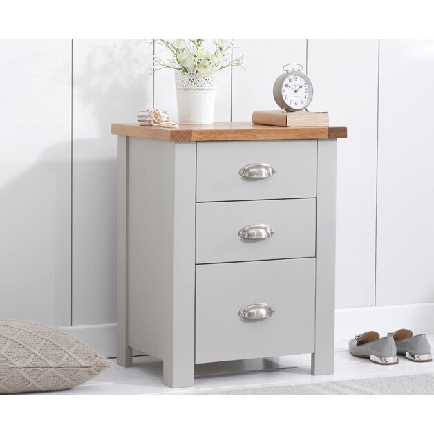 Somerset Oak and Grey Tall 3 Drawer Bedside Table