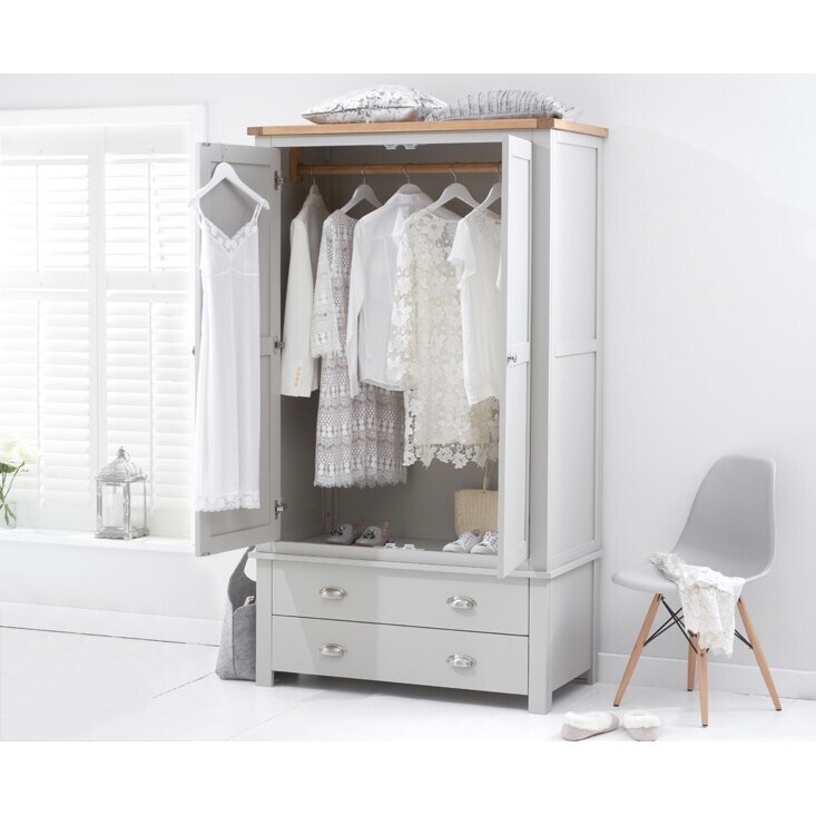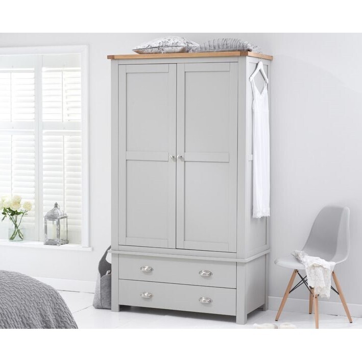 Somerset Oak and Grey Two Door Two Drawer Wardrobe