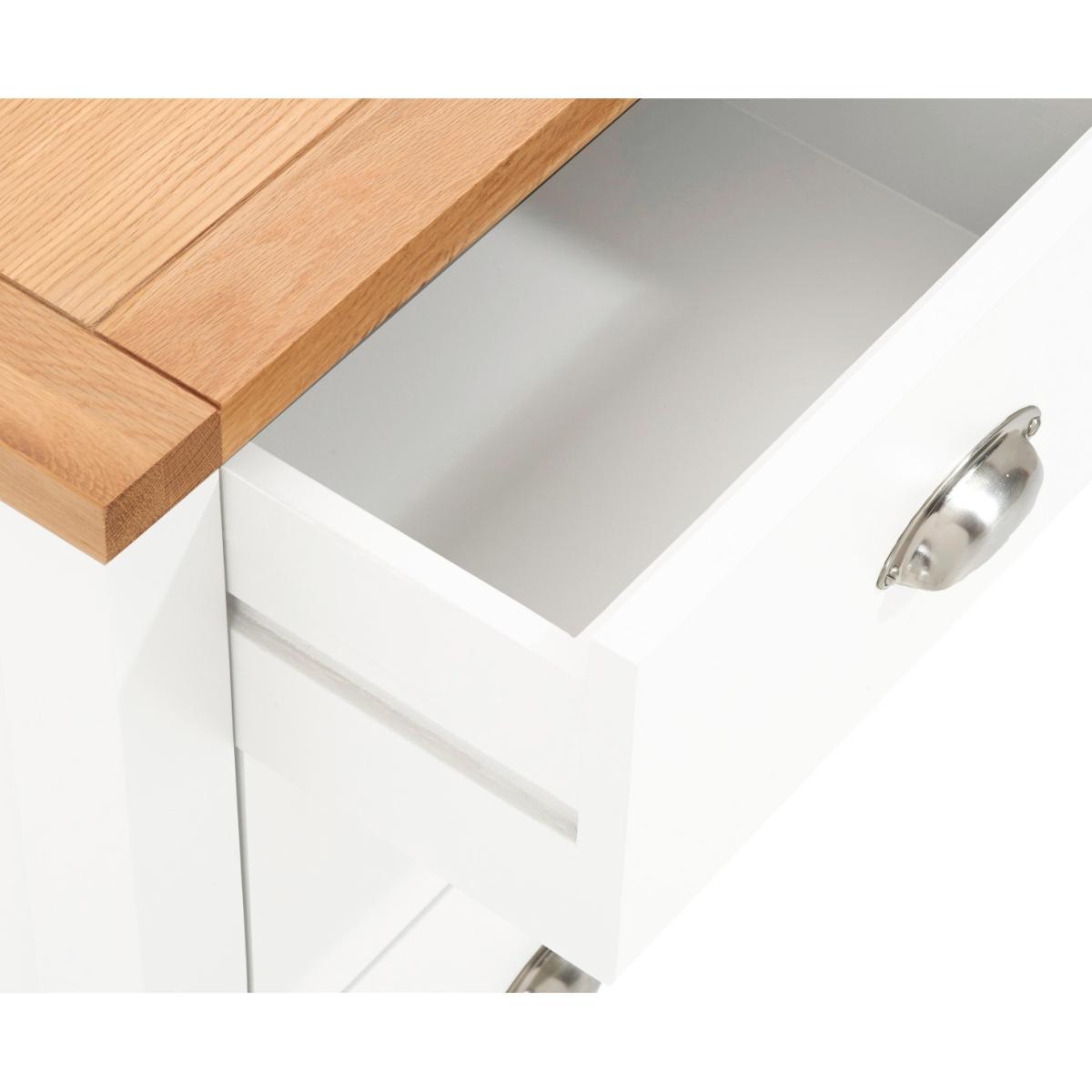 I love this chest because of its versatile mix of oak and white finishes, which makes it adaptable to a variety of interior styles-from Scandi minimalism to contemporary casual. Its clean lines and neutral palette make it a great piece for bedrooms, living rooms, or even hallways. Practical styling tips include decorating the top with a simple lamp and a couple of favourite accessories or books, whilst keeping the drawers clutter-free for maximum organisation. Its size is perfect for adding storage without overpowering a smaller space, and the mix of materials lends a light, airy feel that can easily complement other wood tones or modern finishes.