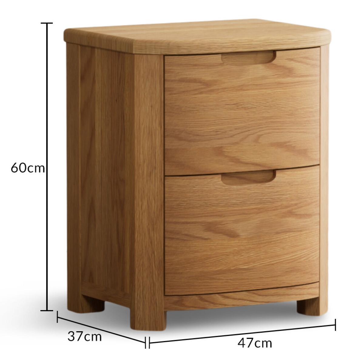 The Somerton Solid Oak 2 Drawer Bedside Chest features a sturdy 100% solid oak frame with a natural finish and is complete with two drawers.