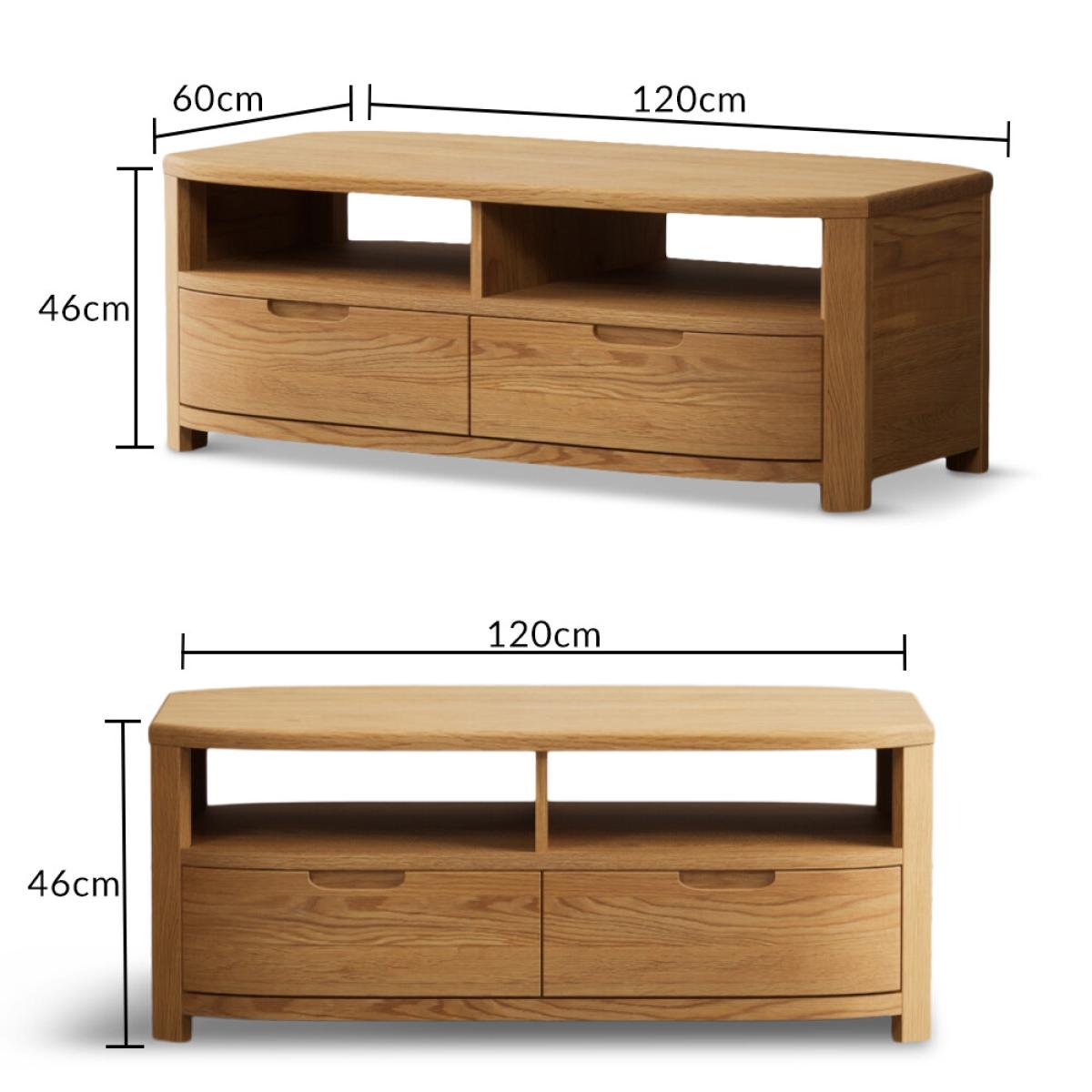 I particularly like how this curved oak coffee table brings a softer edge to a living room while offering plenty of hidden storage in its drawers and open cubbies. The warm, natural grain works especially well in Scandi, Japandi or modern farmhouse interiors, where you want clean lines without feeling too austere. For styling, keep the top simple with a neat tray for remotes, a low vase or two and a small stack of magazines. Use the open compartments for woven baskets or your favourite design books, then tuck away coasters and chargers in the drawers to keep the surface clutter-free.