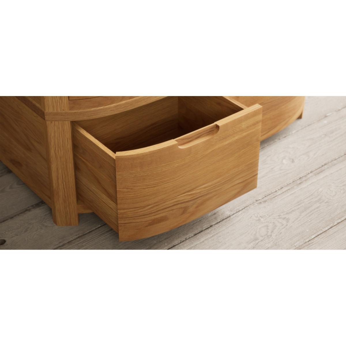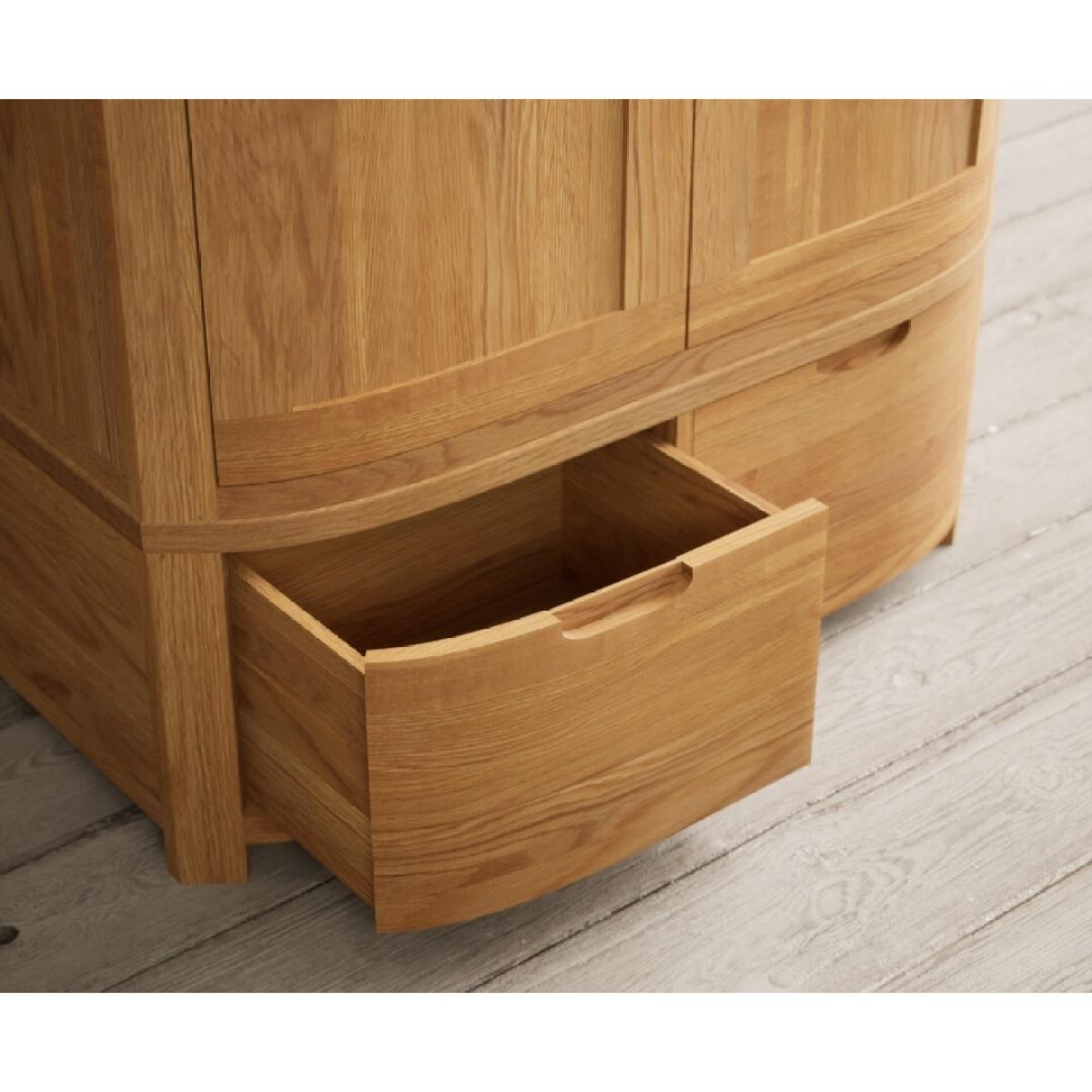 I’m a fan of this curved oak wardrobe because its smooth lines and warm grain give a room an immediate sense of quality without feeling overly fussy. It works equally well in Scandi-inspired bedrooms, modern-classic schemes or even a relaxed coastal look, thanks to its simple oak finish and subtle silhouette. Styling tip: keep the top clear or add just one low vase and a couple of books to showcase the curve, then make the most of its storage by using matching woven baskets on the lower shelf and slim, uniform hangers inside to maximise hanging space. A strip of LED lighting along the top rail will also help you find what you need at a glance.
