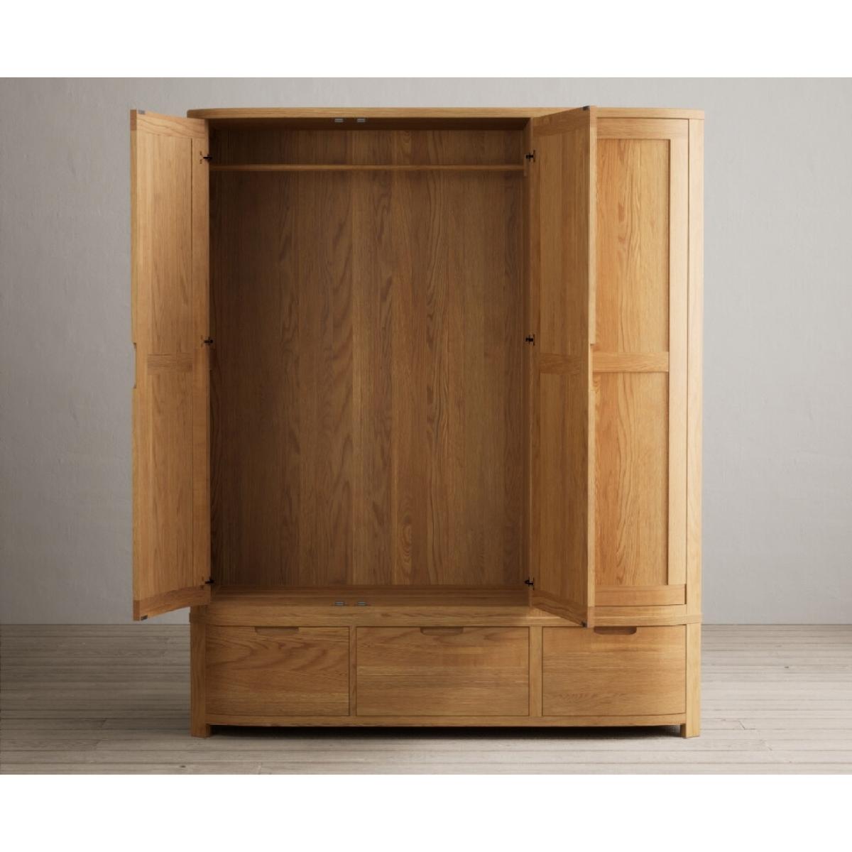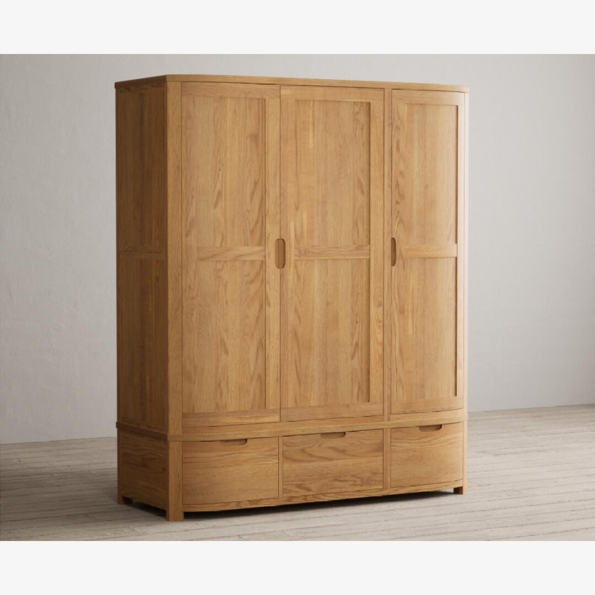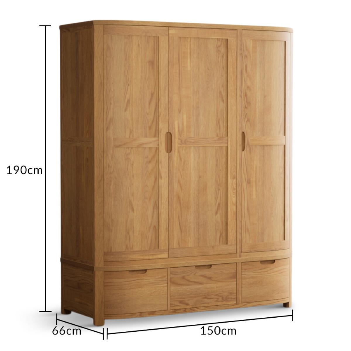 The Somerton Solid Oak Triple Wardrobe is crafted from 100% solid oak with a natural finish.
