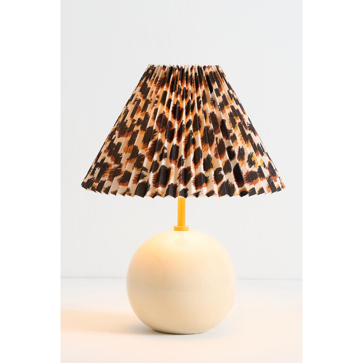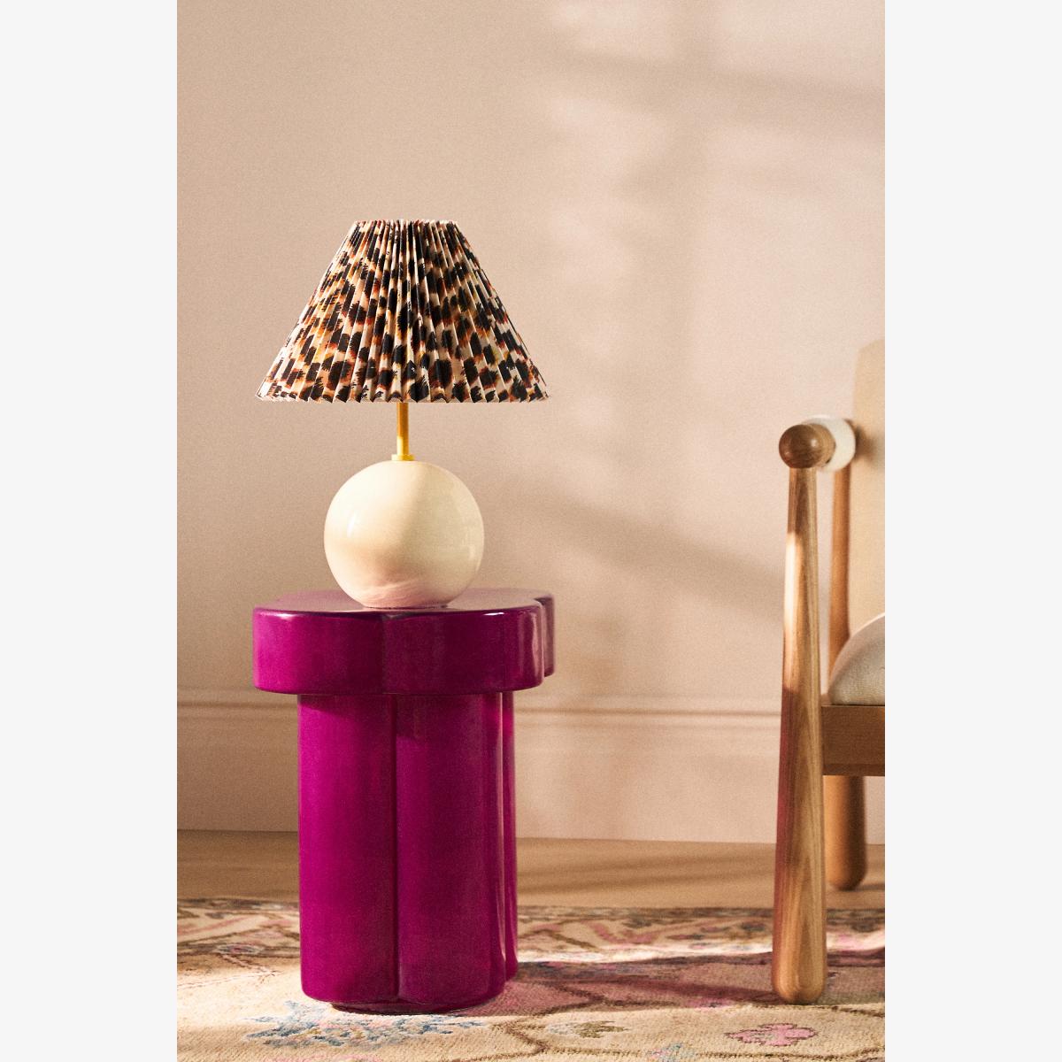 *This item is CE listed, meaning it has been tested and approved to meet the government-regulated safety standards for the UK. Use with electrical outlets of 230v or lower, as anything higher can cause fire or injury. If you're purchasing this item for use outside of the United Kingdom, employ the adapter and voltage converter suited for your country* * Exclusive to Anthropologie * Glazed ceramic base * Linen knife-pleated shade with UNO fitting included * White fabric cord * Includes matching harp and finial * Fitted with a plug and on/off socket switch * Cannot be installed with a dimmer * One light socket * 60 watt max incandescent; 9 watt max LED * We recommend using type E27 / A15 bulbs * CE listed * Imported