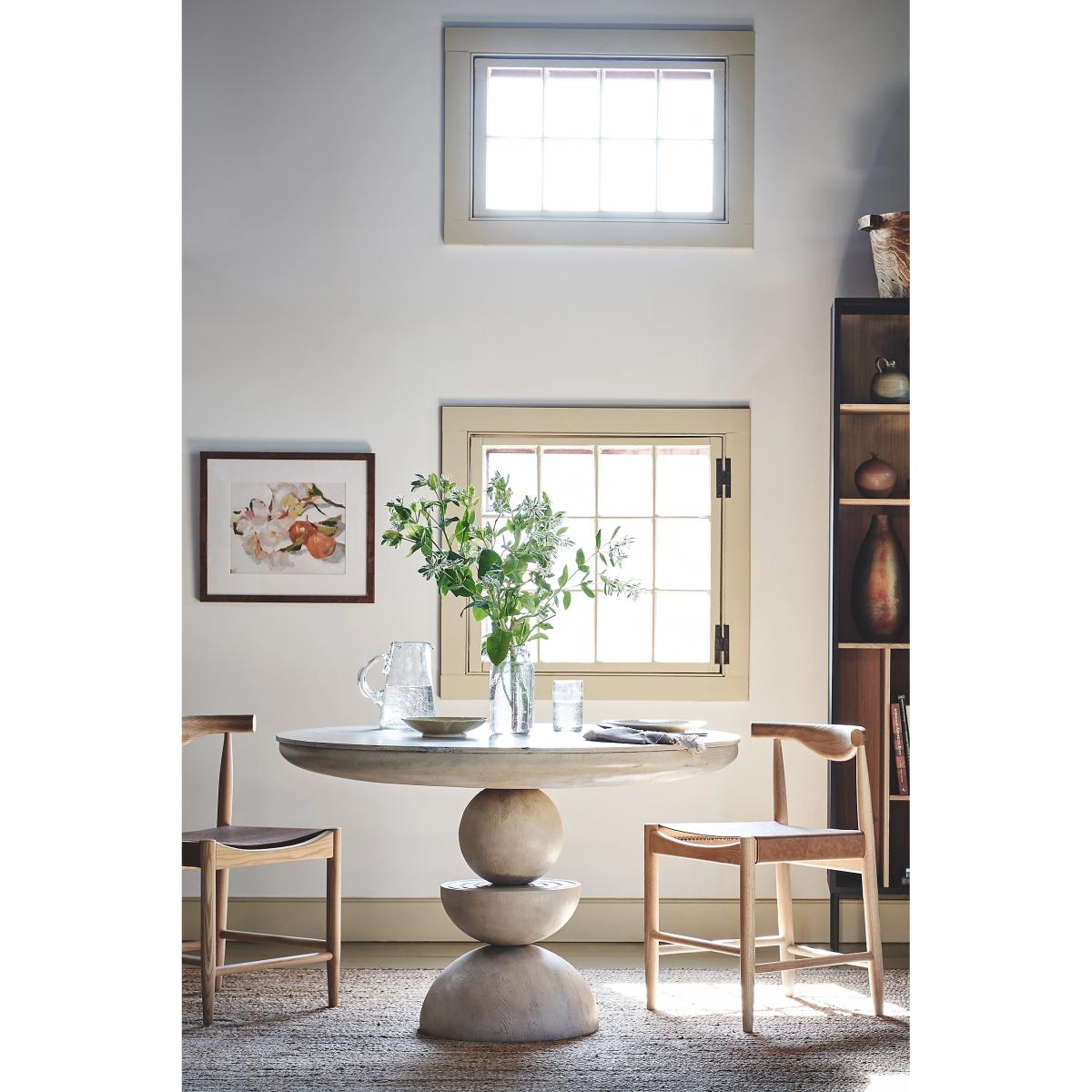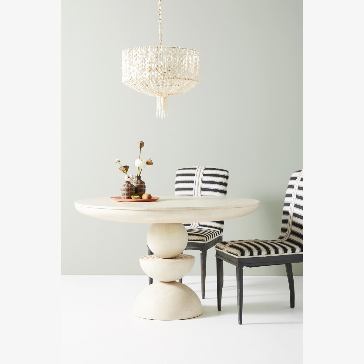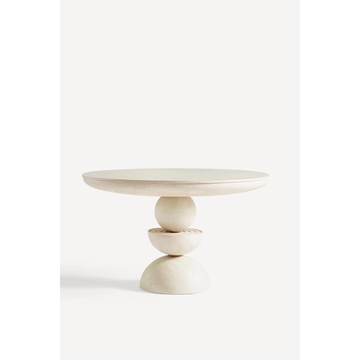 A sculptural, room-anchoring piece for an eat-in kitchen or small dining space, this striking table boasts meticulous craftsmanship and a clever design. With three rounded shapes appearing to be delicately balanced on top of each other, its base is artwork in itself, while a light blonde finish and durable ash wood construction give it a contemporary flair worthy of display. * Exclusive to Anthropologie * Online only * Comfortably seats 4 people * Ash wood, engineered hardwood; blonde ash finish * Comfortably seats four * Dusting is best done with a soft, lint-free cloth * Wipe gently with a warm, damp cloth * If necessary, use mild soap to remove soiled areas * Dry immediately after cleaning * Do not use harsh solvents or chemicals * This piece is intended for indoor use * No assembly required * Imported