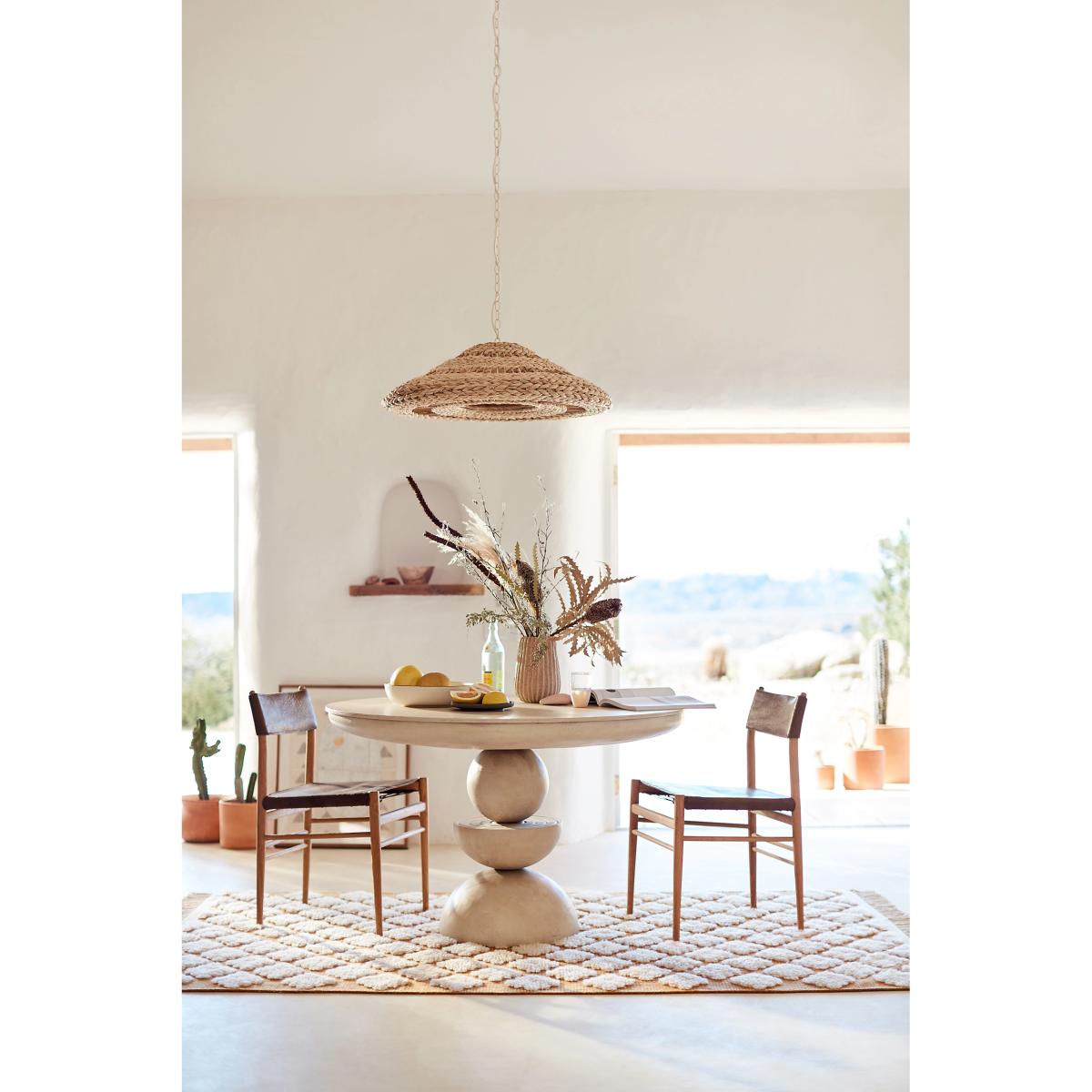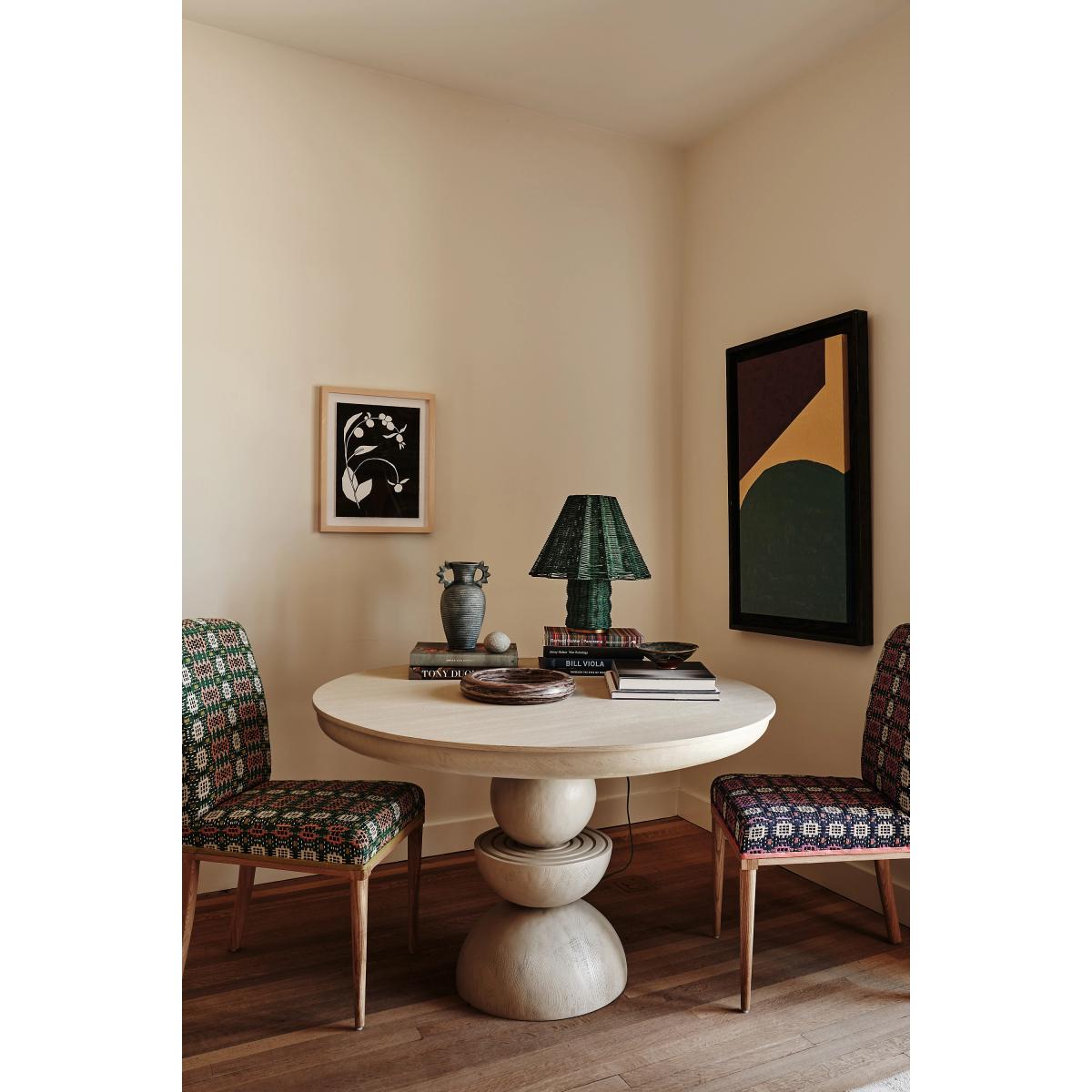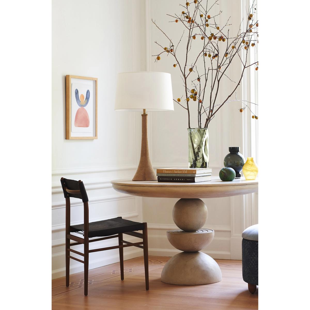 A sculptural, room-anchoring piece for an eat-in kitchen or small dining space, this striking table boasts meticulous craftsmanship and a clever design. With three rounded shapes appearing to be delicately balanced on top of each other, its base is artwork in itself, while a light blonde finish and durable ash wood construction give it a contemporary flair worthy of display. * Exclusive to Anthropologie * Online only * Comfortably seats 4 people * Ash wood, engineered hardwood; blonde ash finish * Comfortably seats four * Dusting is best done with a soft, lint-free cloth * Wipe gently with a warm, damp cloth * If necessary, use mild soap to remove soiled areas * Dry immediately after cleaning * Do not use harsh solvents or chemicals * This piece is intended for indoor use * No assembly required * Imported