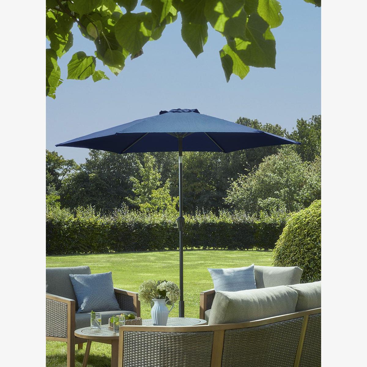 The perfect combination of style and practicality, our Soneva parasol protects from the sun whilst allowing you to stay outside and enjoy the gloriously warm days. The navy blue tone works well to add some modern colour to your garden space. It is crafted from premium materials that offer a UV protection rating of 50+ and comes with a tilt function to ensure the perfect position as the sun moves. Also available in taupe.