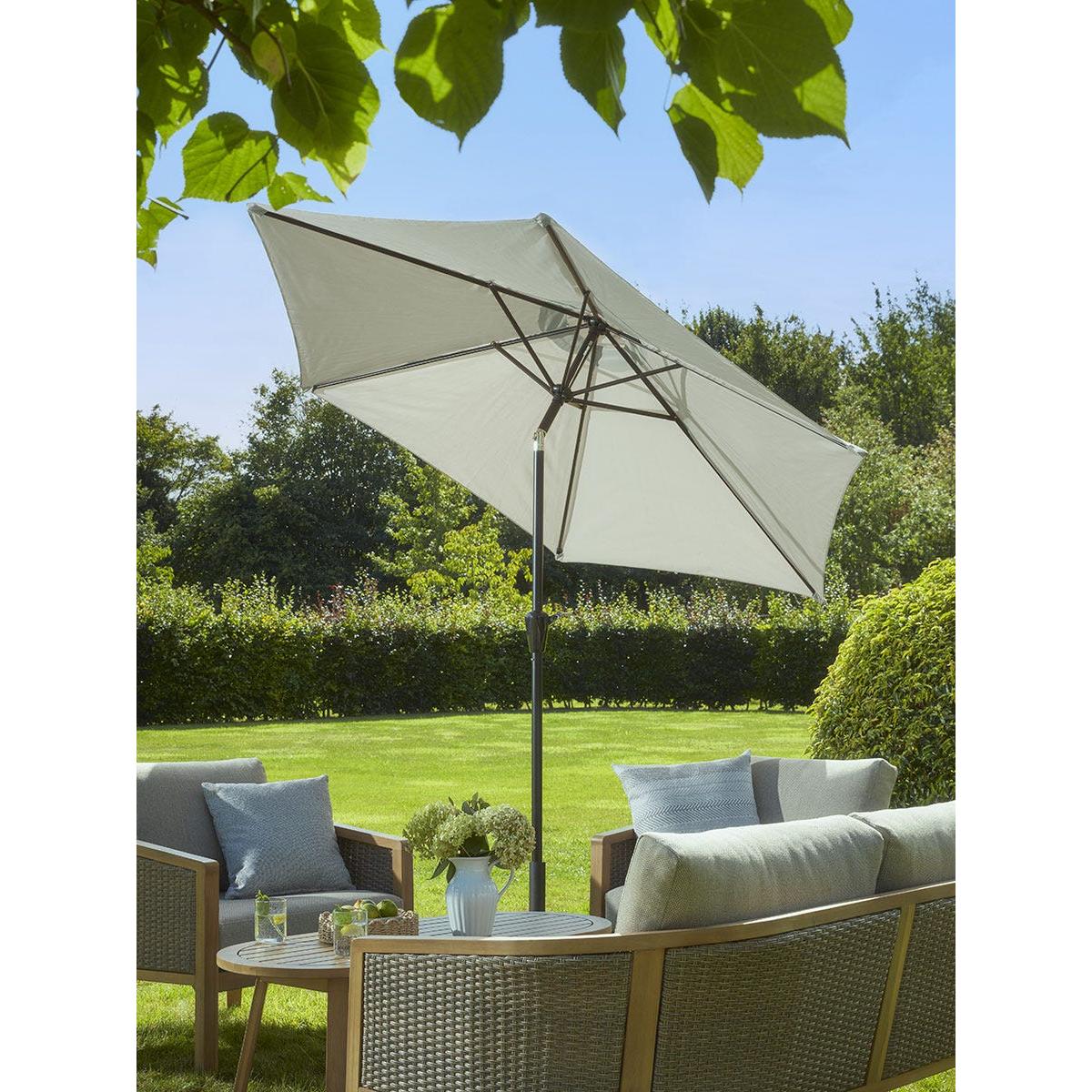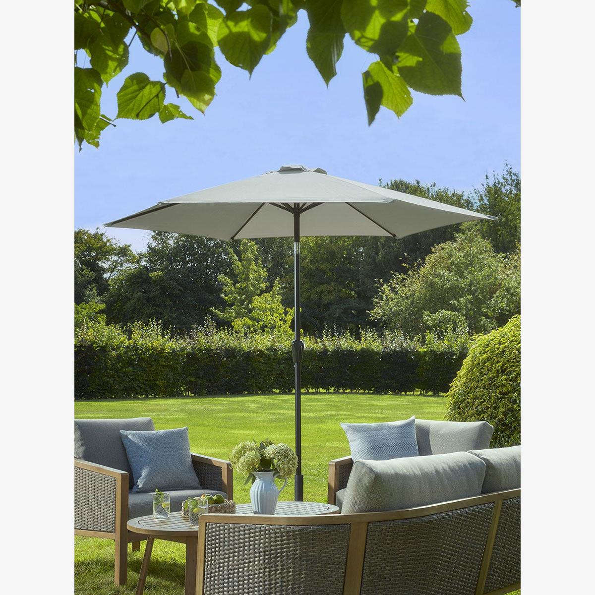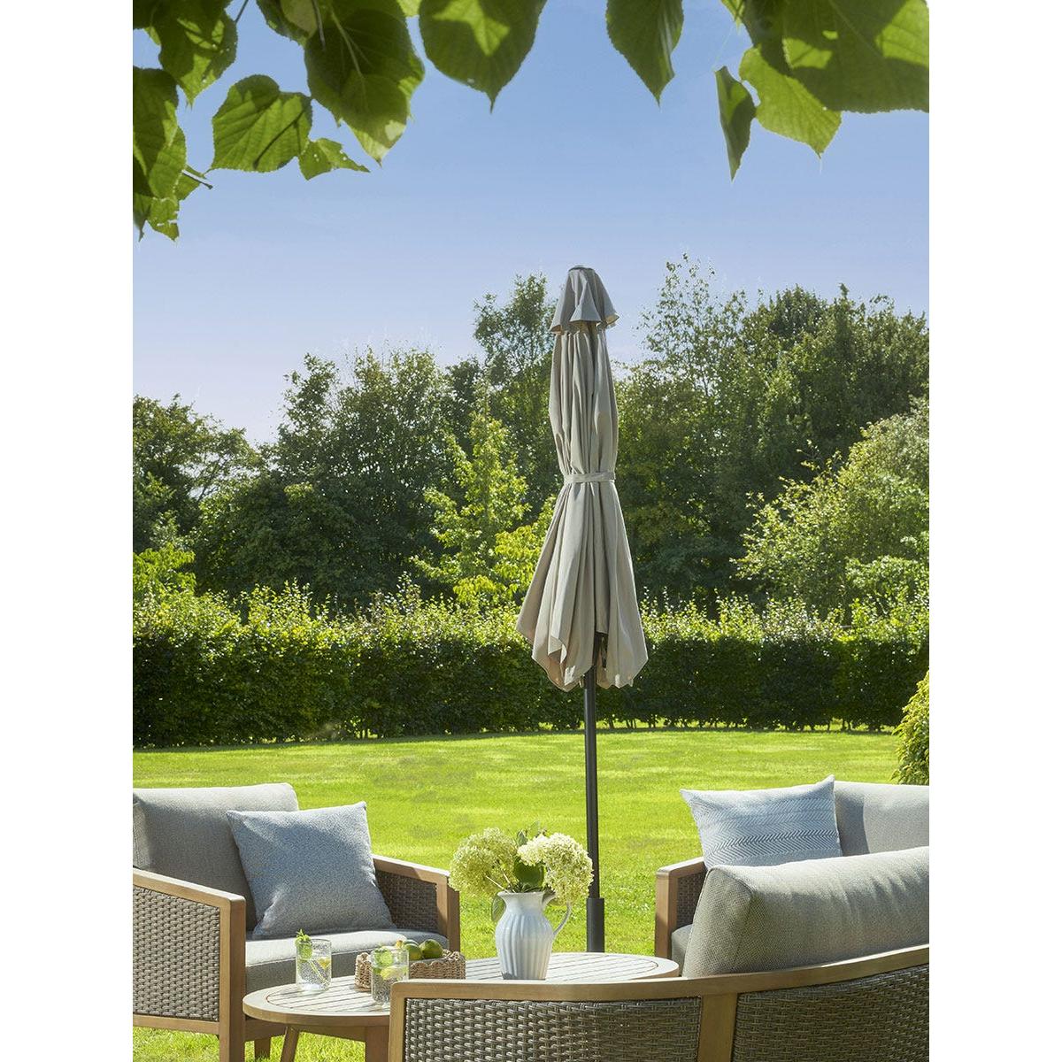 I love this taupe parasol for its versatility and neutral tone, making it an easy addition to both contemporary and traditional outdoor settings. It works particularly well in understated, modern gardens or patio areas where it can seamlessly complement muted colour palettes or natural materials like wicker and wood. Practical styling tips include pairing it with cosy textiles such as cushions and throws in complementary shades for a layered look, or positioning it over seating areas to create a cosy shaded corner for lounging. Its understated colour allows for flexibility, so it won’t compete with or clash against statement furniture or vibrant plantings, making it a reliable choice for stylish outdoor spaces.