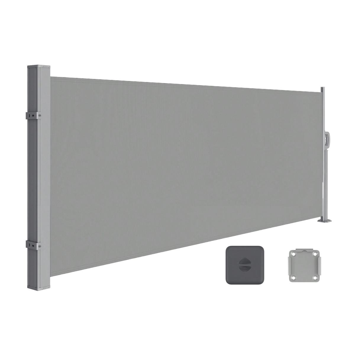This extendable side shade measures 140 x 300 cm and is perfect for providing privacy and sun protection on your patio, terrace, or garden. Made from 220 gm2 polyester with a PU coating, it is water-resistant and opaque, offering UPF 50 protection against fading. The robust and durable design features high-quality steel housing and rust-resistant zinc-nickel alloy screws. Assembly is worry-free with the included accessory kit and clear instructions, while the ground bracket with protective cap ensures convenient mounting. Easily extendable and noiseless, this privacy screen also includes a safety lock on the handle for added reliability.