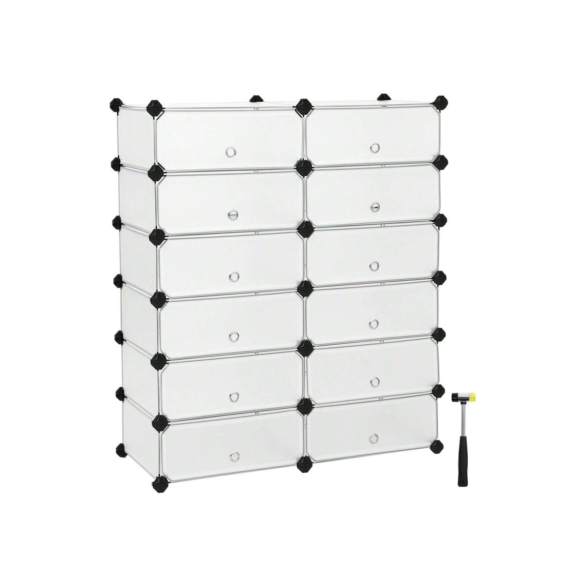 SONGMICS Modular Shoe Rack Storage Unit, 12 Compartments - White