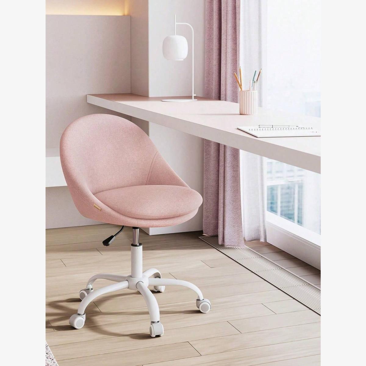 This stylish and versatile swivel chair features a chic look with clean, geometric lines, making it a unique addition to your home office, study, or bedroom. Its compact design (60 x 60 cm) allows for easy height adjustment by 10 cm and the absence of armrests enables it to be tucked under the desk, maximising your space. Enjoy comfortable seating with a 2-layer well-padded cushion and a large seat that relieves pressure on your hips. The breathable cotton-linen fabric surface enhances comfort, ensuring a pleasant sitting experience, while easy assembly allows you to set it up in just a few simple steps.