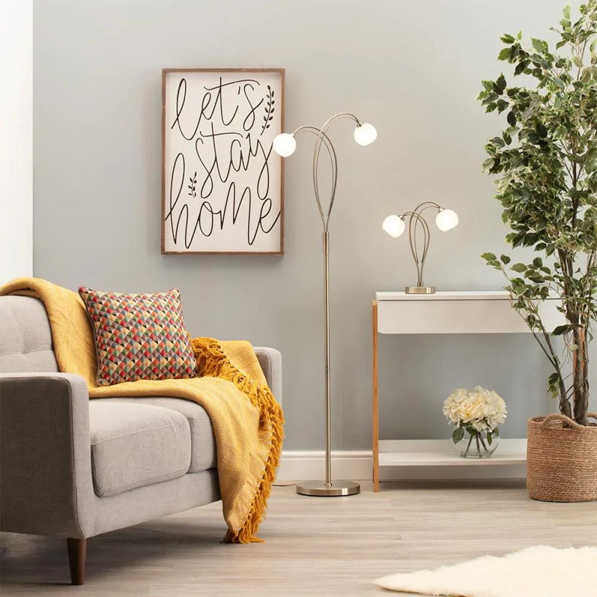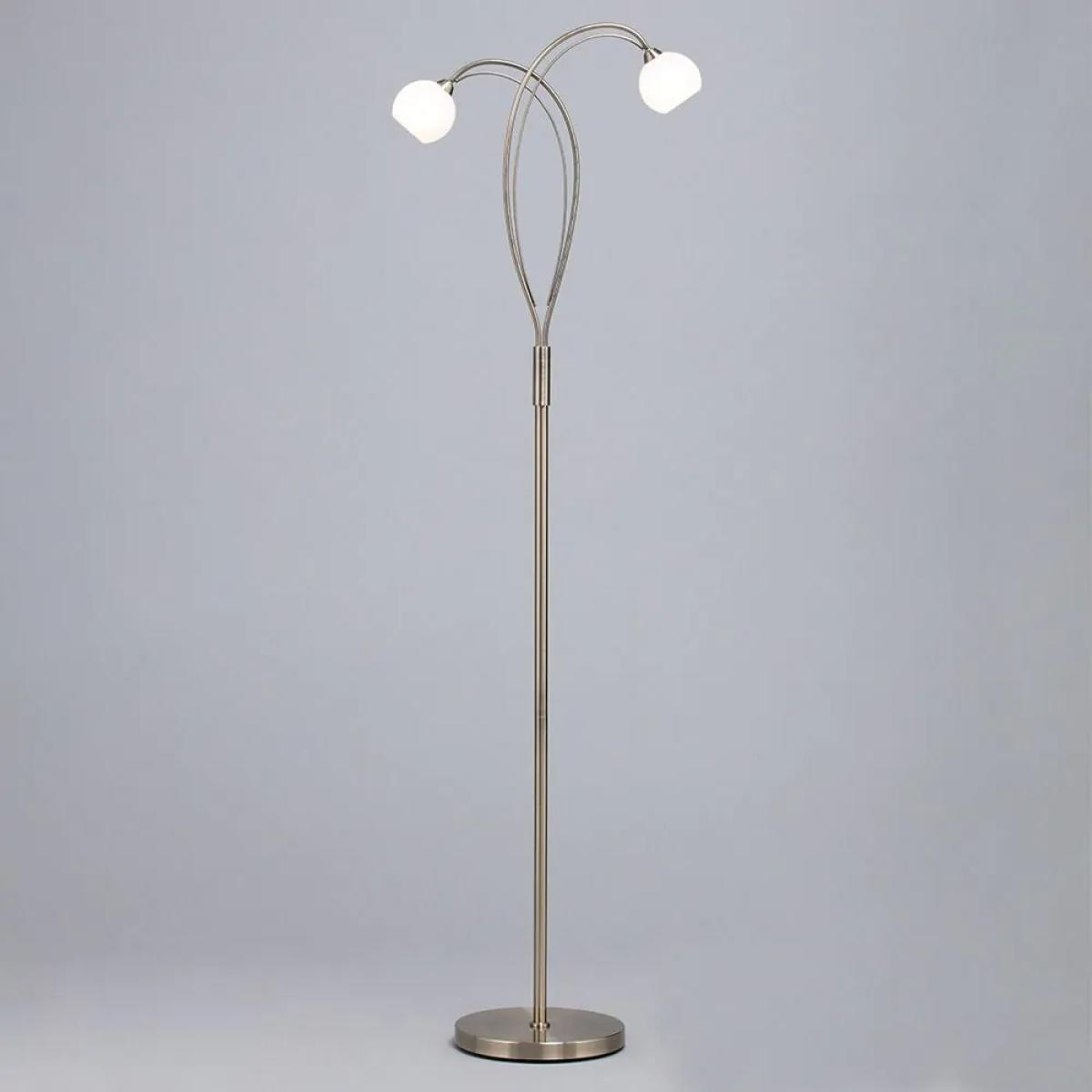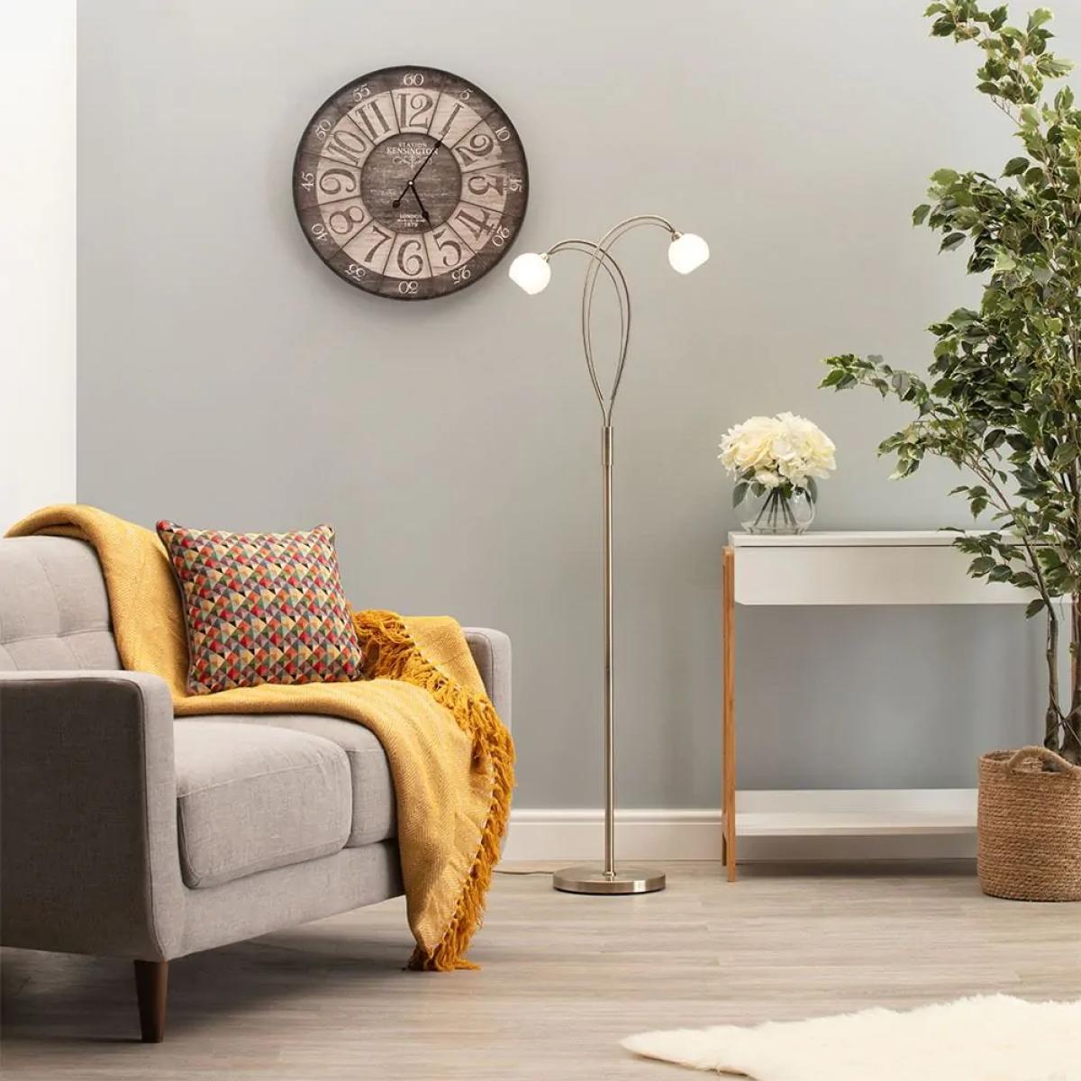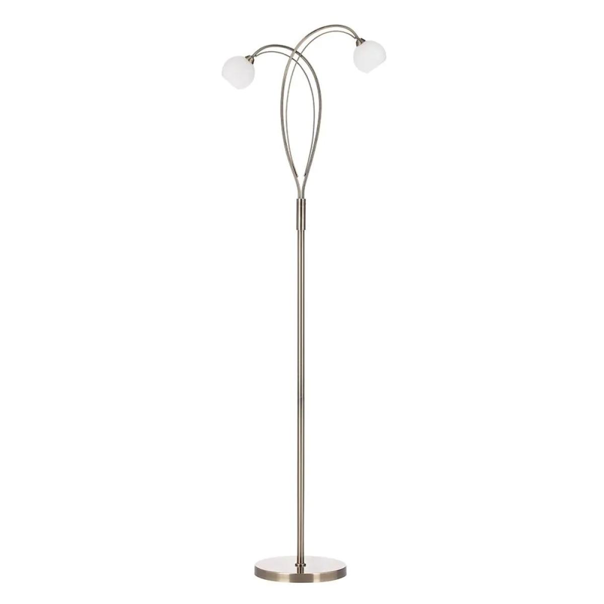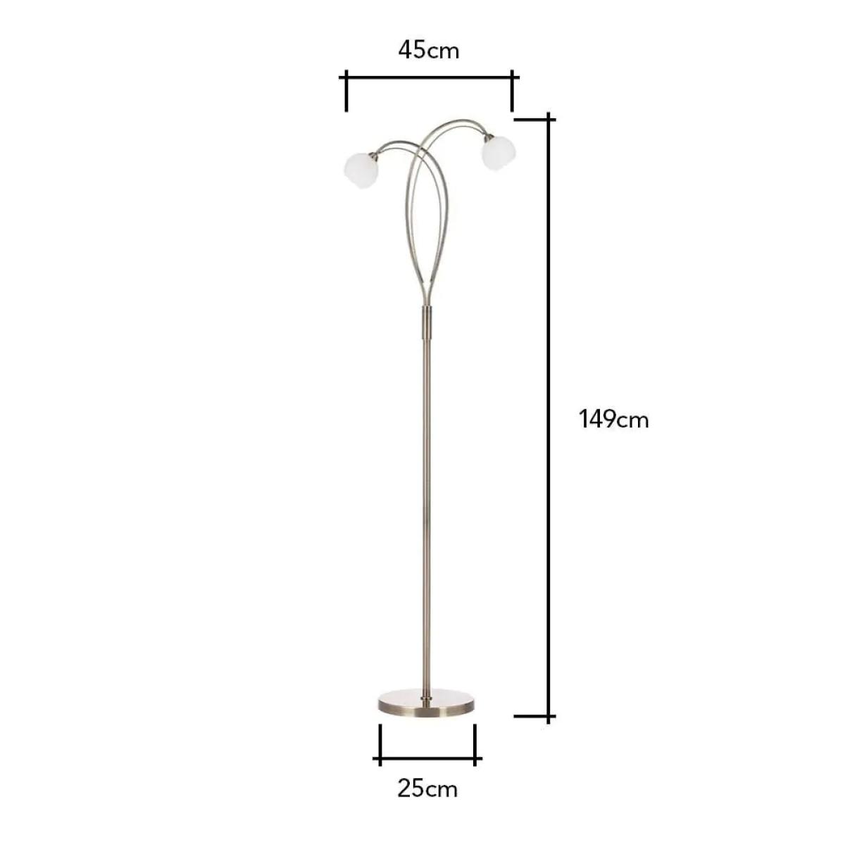 I love this floor lamp for its elegant, antiqued brass finish which adds a touch of sophistication without feeling overly formal. It works particularly well in both mid-century modern and contemporary interiors, especially in living rooms or bedrooms where you want a statement piece that still feels versatile. For styling tips, consider pairing it with neutral textiles and minimalist furniture to let the brass details stand out, or place it beside a plush armchair or a small side table for functional ambient lighting. Its double-headed design makes it practical for spreading light across wider spaces, while its sleek silhouette means it won’t overpower smaller rooms.