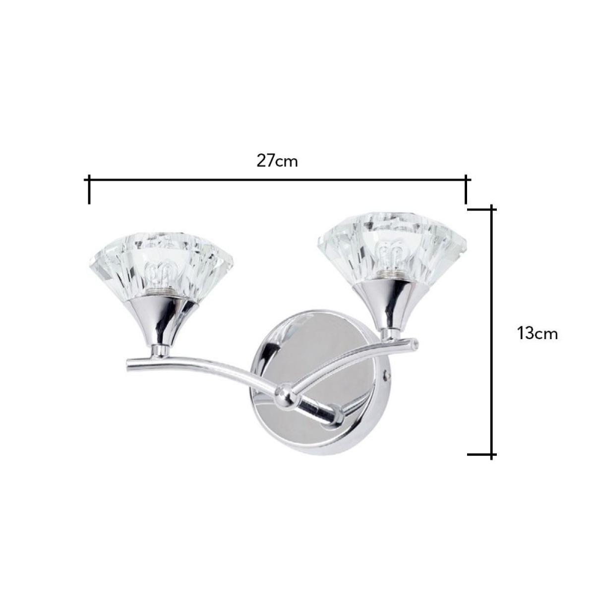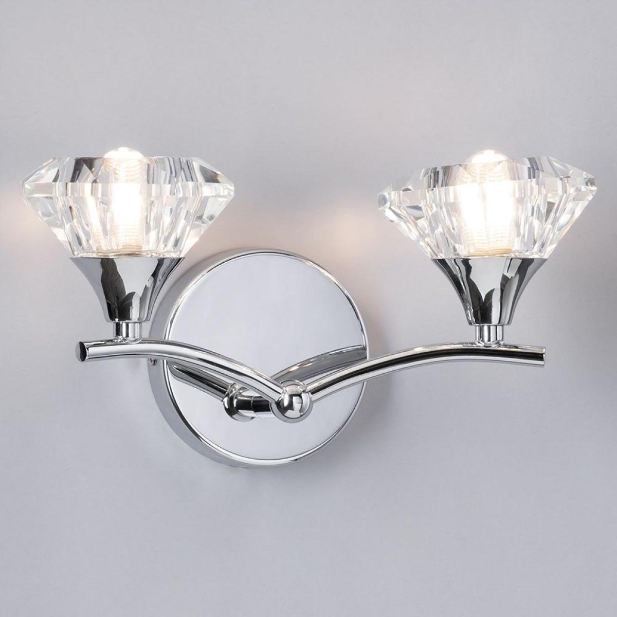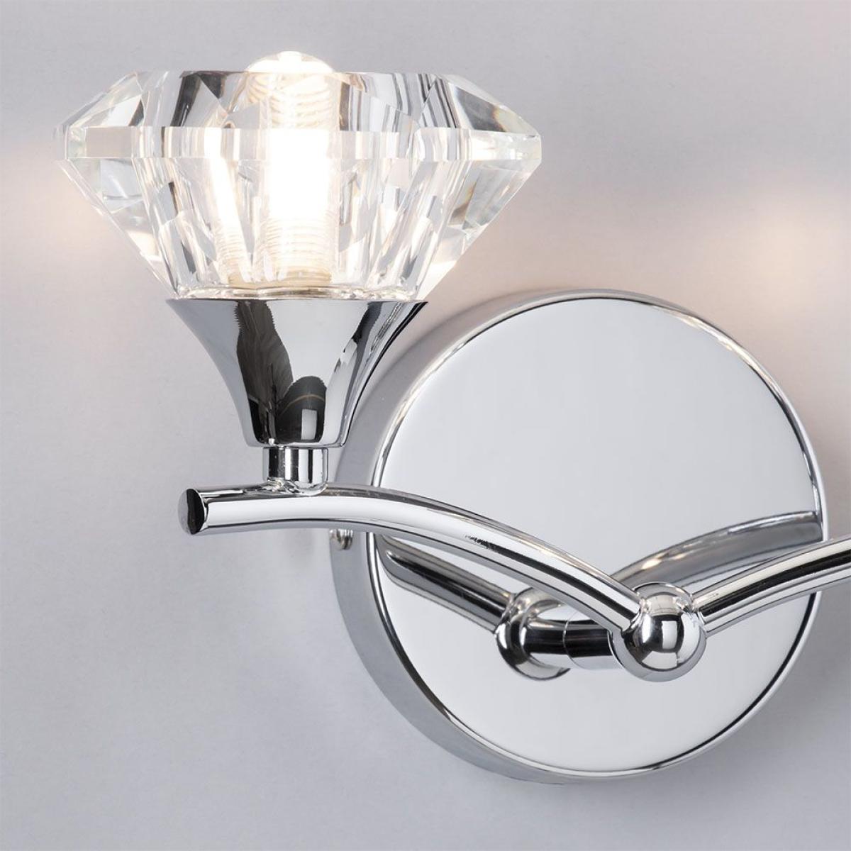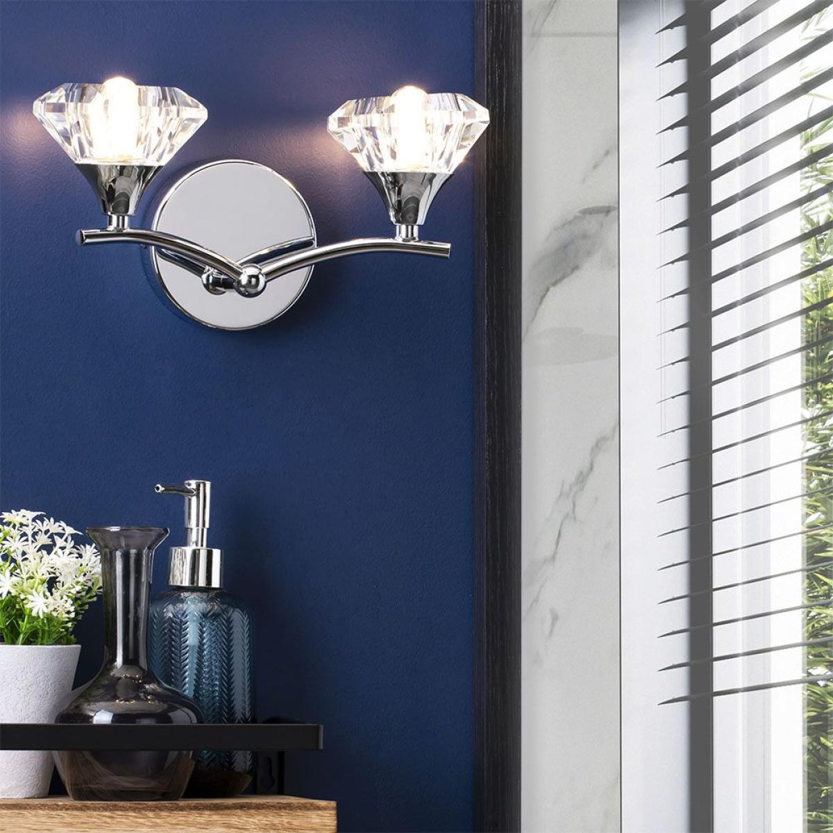 This chrome wall light offers a sleek, contemporary look that works particularly well in modern bathrooms, where its reflective finish adds a touch of sophistication. I love how its clear glass shades diffuse light softly, making it ideal for ambient lighting around mirrors or vanity areas. When styling, consider pairing it with minimalist fixtures or subtle metallic accents to keep the space feeling cohesive. Practical tips include placing it at eye level for even illumination and using warm-toned bulbs to create a welcoming atmosphere. Overall, it's a versatile piece that elevates the look of any bathroom while providing functional lighting.
