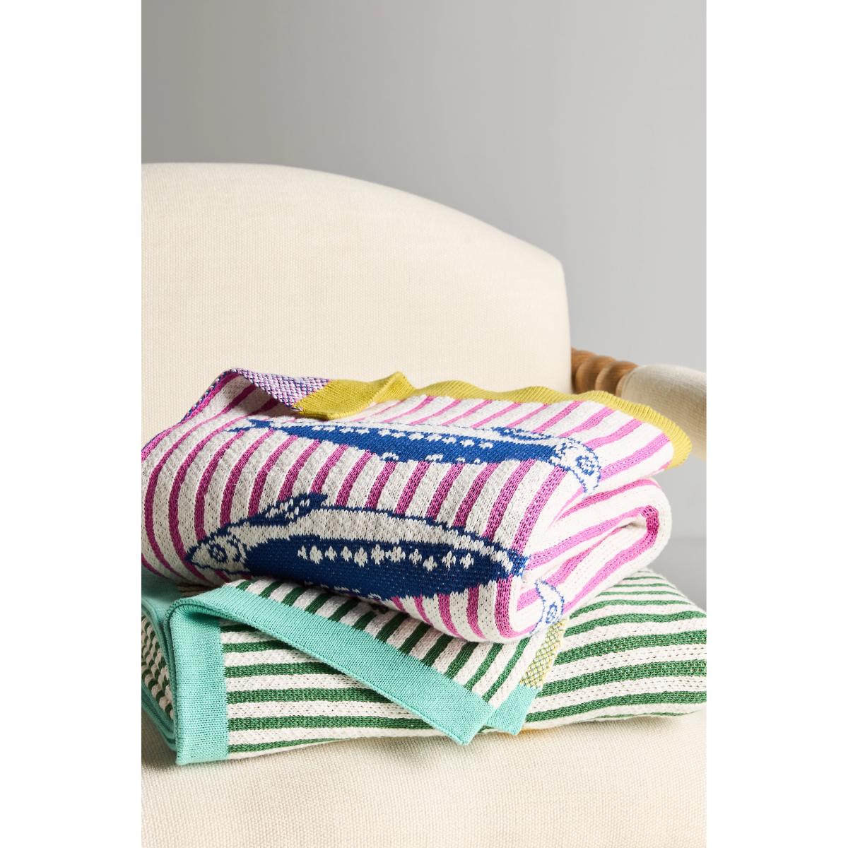 I love the Sonnie cotton knit throw because of its relaxed, cosy vibe and subtle texture, making it versatile for many interiors. It works particularly well in casual or boho-inspired spaces, adding a layer of warmth and visual interest to sofas or beds. For practical styling, try draping it loosely over a sofa arm or folding it neatly at the foot of a bed for an inviting touch. Its soft stripes and small embroidered detail make it a great pairing with neutral tones or layered with other textured textiles to create a cosy, lived-in look. It’s a simple, yet effective, way to introduce colour and texture without overwhelming the space.