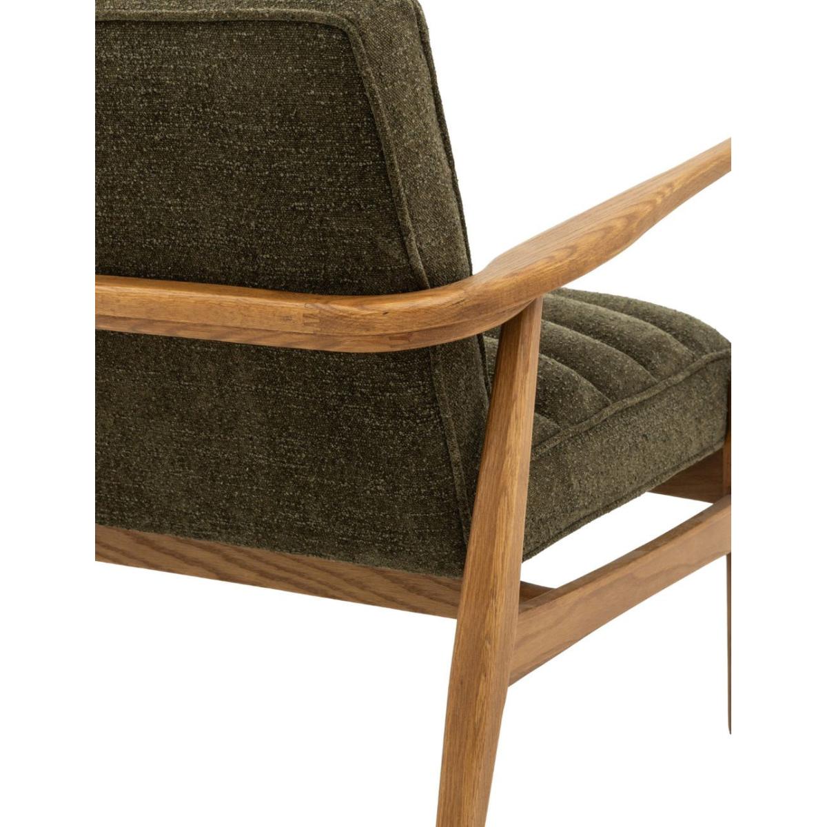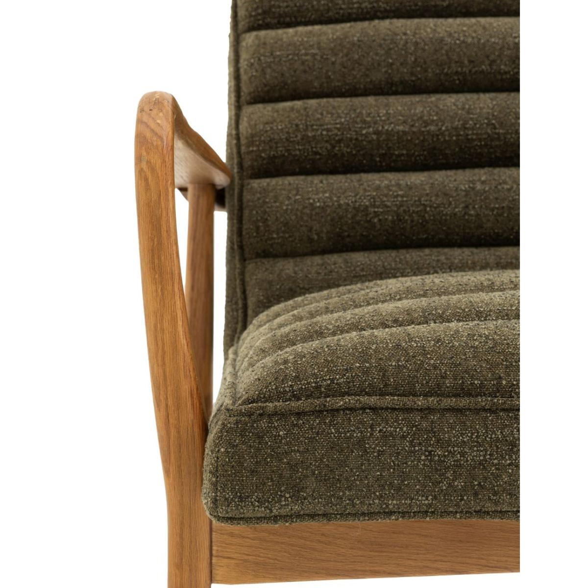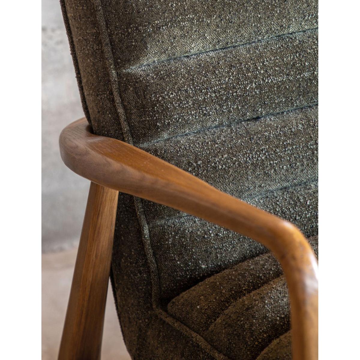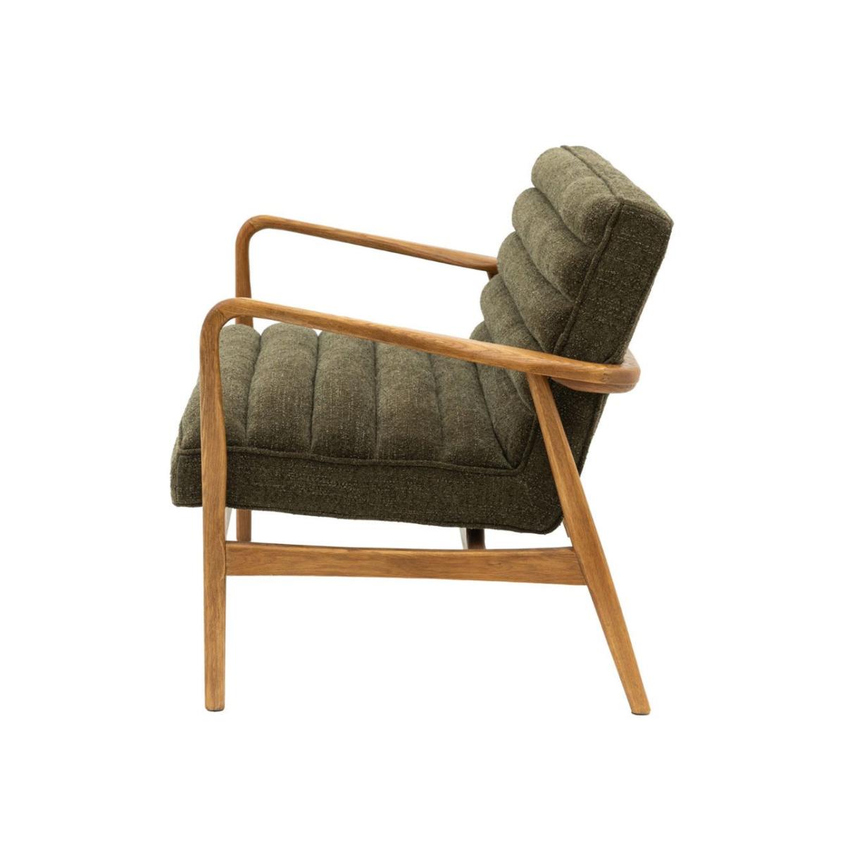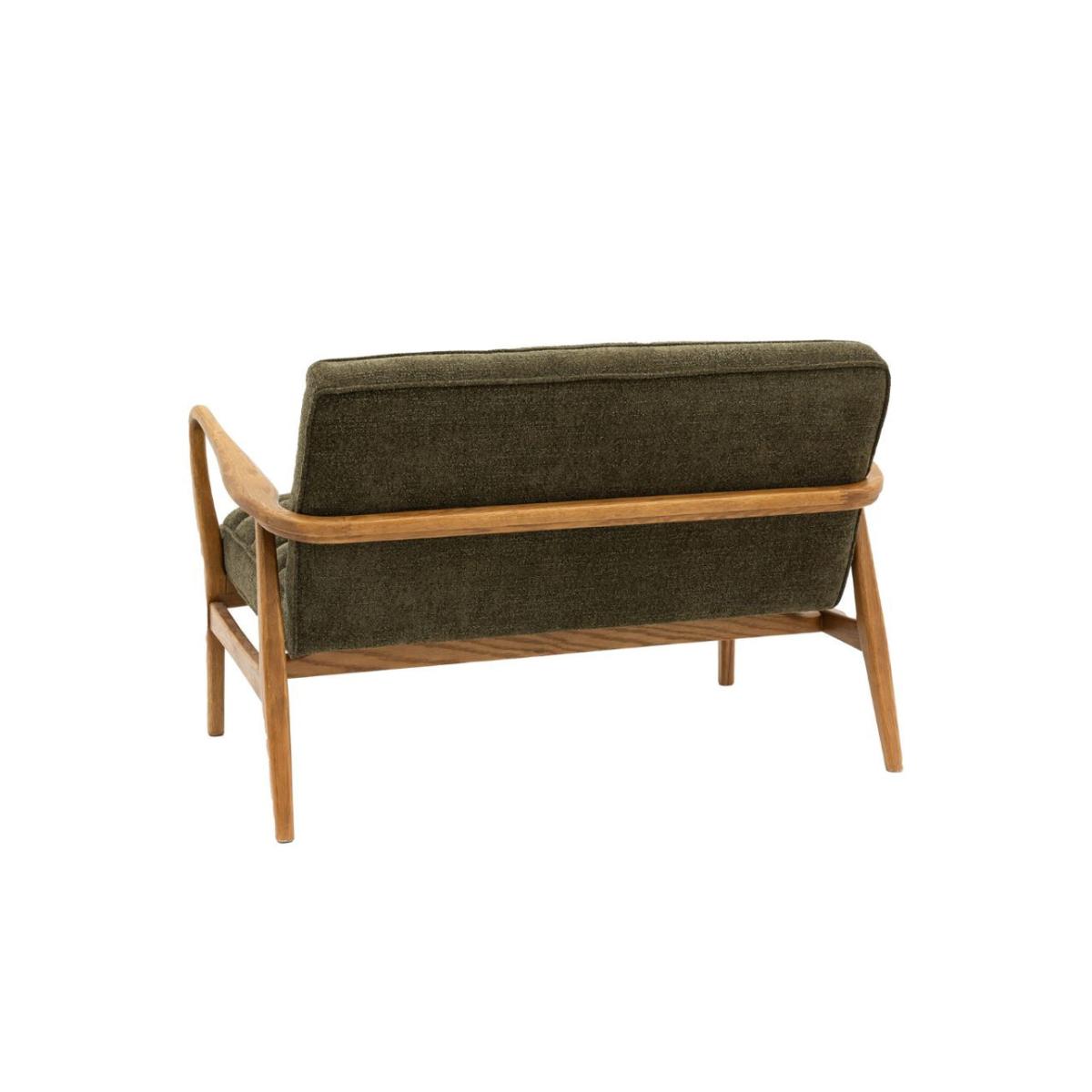 Featuring a sleek wooden frame with beautifully curved arms, this two seater sofa is upholstered in a plush, boucle fabric in deep green, offering a cosy and stylish place to sit and relax. Also available as an armchair and footstool Featuring a sleek wooden frame with beautifully curved arms, this sofa is a cosy and stylish place to sit and relax