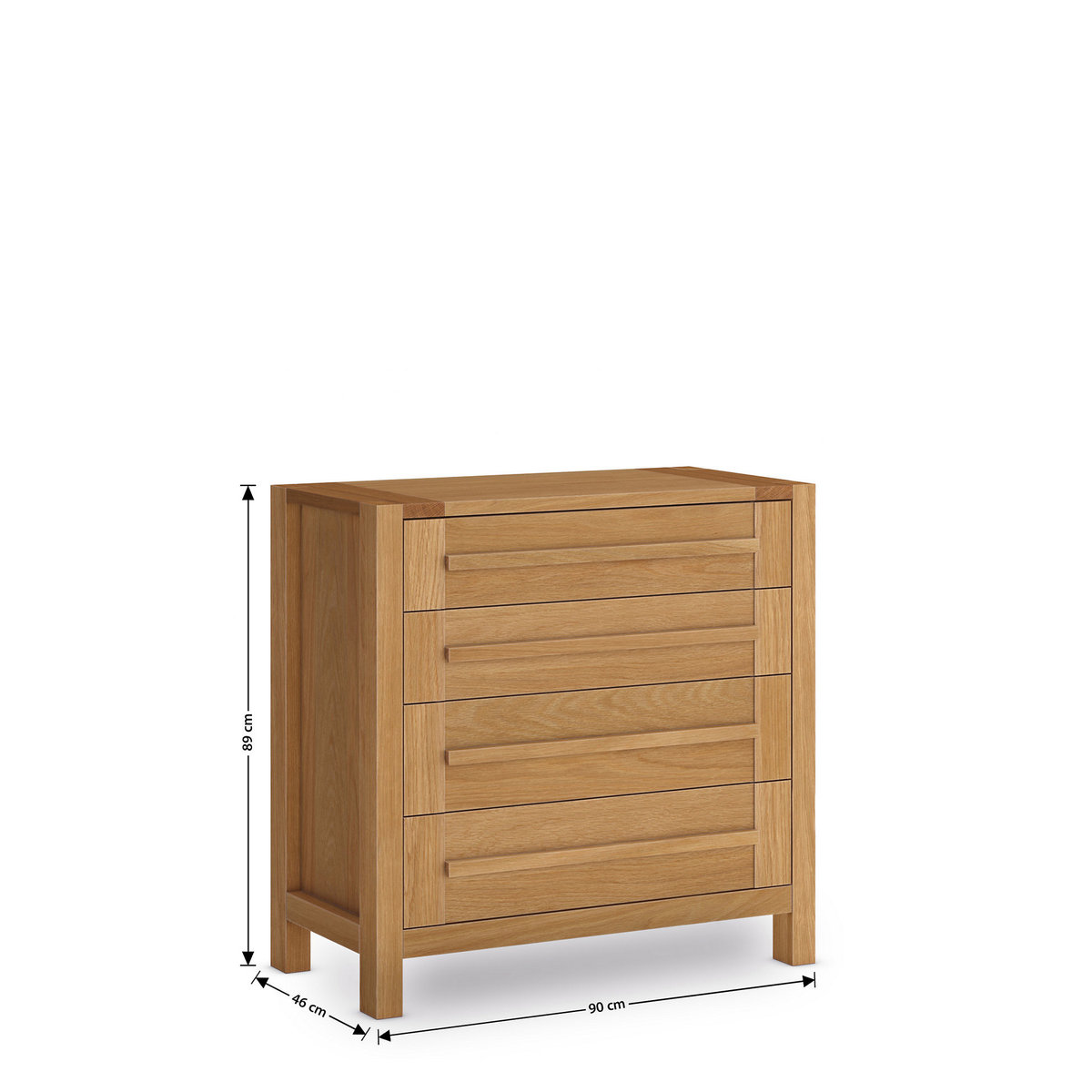 From our Sonoma™ collection we have this beautiful and expertly crafted four drawer chest that we're sure you'll love. Made from a high-quality oak and oak veneer this wood chest will be great for rooms where space is hard to come by, as it features four full-width drawers for all of your storage needs. Featuring attractive clean lines and a warm oak colour, this versatile chest will look at home no matter the decor, while a protective lacquer finish ensures durability and long use. This drawer chest will look stunning with other furniture from the Sonoma™ range. This product is typically available for delivery within 7 days. Subject to product and delivery availability. Please see checkout for accurate delivery dates.