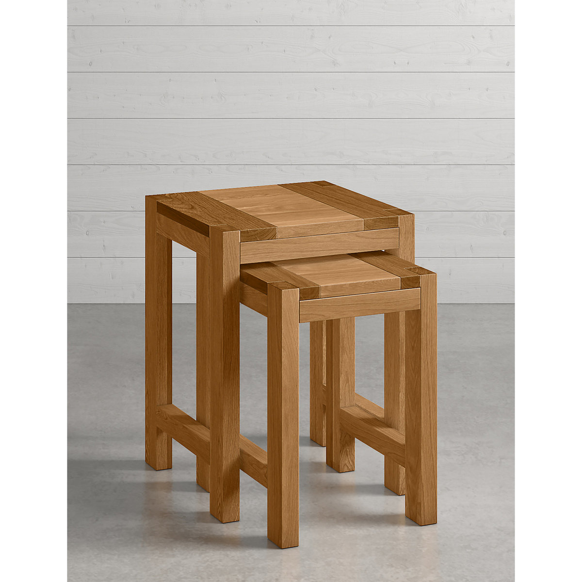 Save on space without compromising on functionality with this versatile Sonoma™ nest table. Pull out the smaller table for when you have guests and need extra surfaces, or tuck it neatly under the larger one for moments when you need a little more space. We've made this wooden nest table from predominately solid oak and oak veneer for a bright finish that works well in any space, while a low-sheen lacquer helps to resist scuffs and scratches for a longer life.