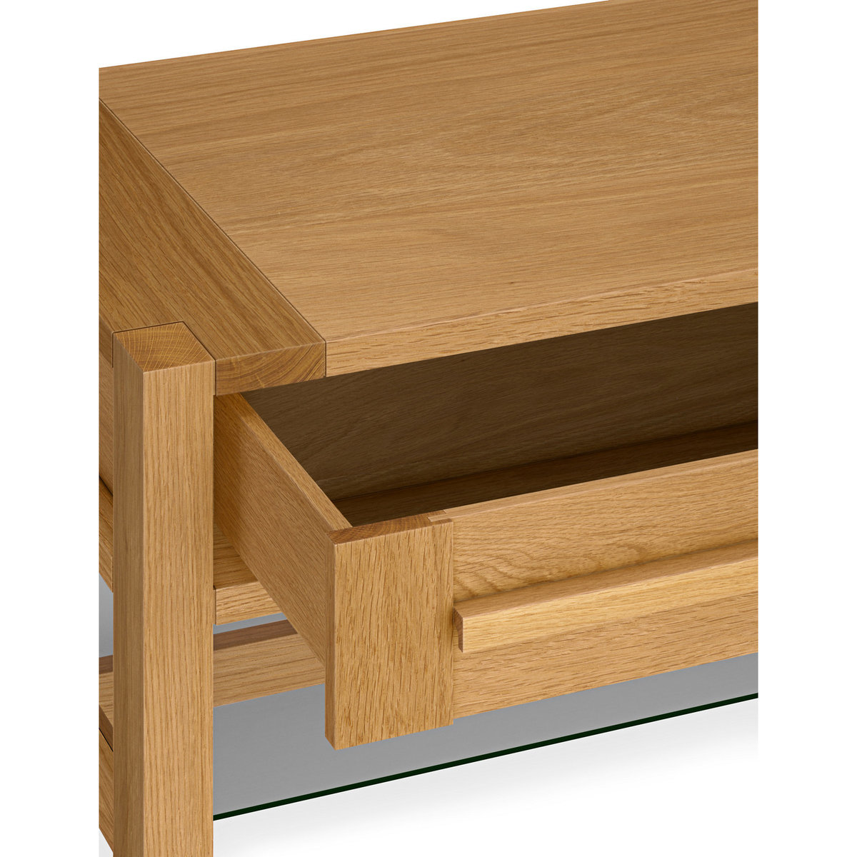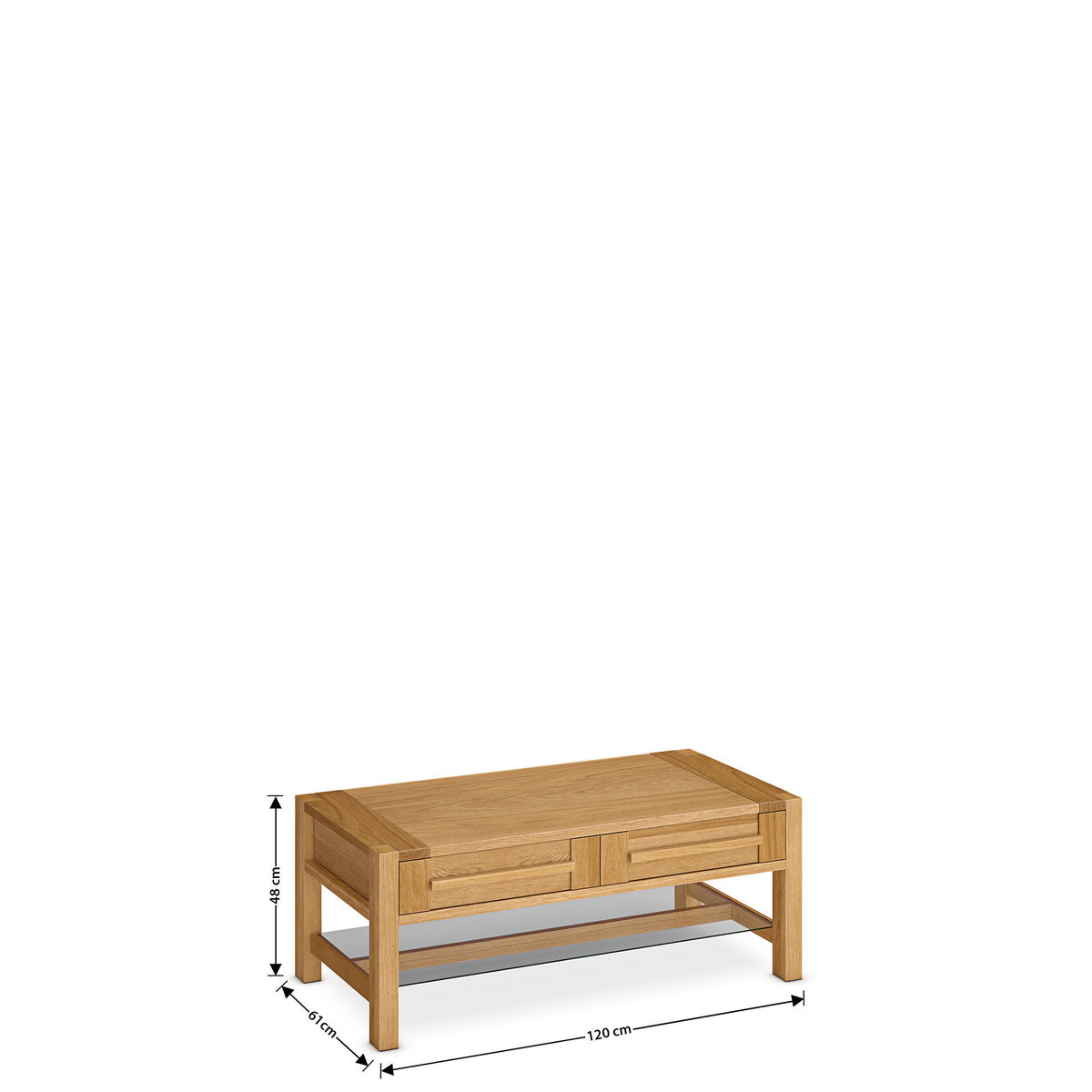 Create a new focal point in your living room with this Sonoma™ storage coffee table. Four soft-close drawers provide ample storage space, while two different levels are perfect for resting drinks or proudly displaying your favourite books and magazines. Built from predominately solid oak with oak veneer, this wooden coffee table is light enough to brighten up any room and neutral enough to work with a wide range of spaces. We’ve finished it off with a low-sheen lacquer to protect from the inevitable bumps and scuffs that everyday life entails. This product is typically available for delivery within 7 days. Subject to product and delivery availability. Please see checkout for accurate delivery dates.