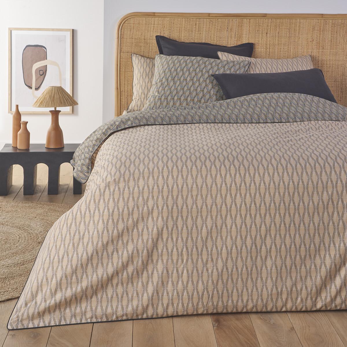 A revisited geometric design. Geometric rhythms freely inspired by traditional craftsmanship, delicately enhanced with a contrasting bias. Created by La Redoute Interiors. The cotton percale offers a pleasant feeling of freshness and lightness. Its tight weave makes it particularly soft for premium comfort. A matte and smooth material that will soften over time. Product Details • 100% cotton • Percale • 200 thread count: The higher the thread count, the higher the quality of the weave • Different geometric patterns on either side • Contrasting taped edging • Envelope-style opening Match this item with the rest of the bedding in the range for a stylish bedroom. And you can mix and match it with different colours and styles from our other bedding ranges when you want to change things up and create your own unique look. Care Advice • Machine washable at 60°C • By washing your laundry at 40°C instead of 60°C, you limit energy consumption. Sizes • 140 x 200cm: Single • 200 x 200cm: Double • 240 x 220cm: King • 260 x 240cm: Super King • OEKO-TEX® Standard 100. Standard 100 certification by OEKO-TEX® tests textile products for harmful substances via an independent, international label.
