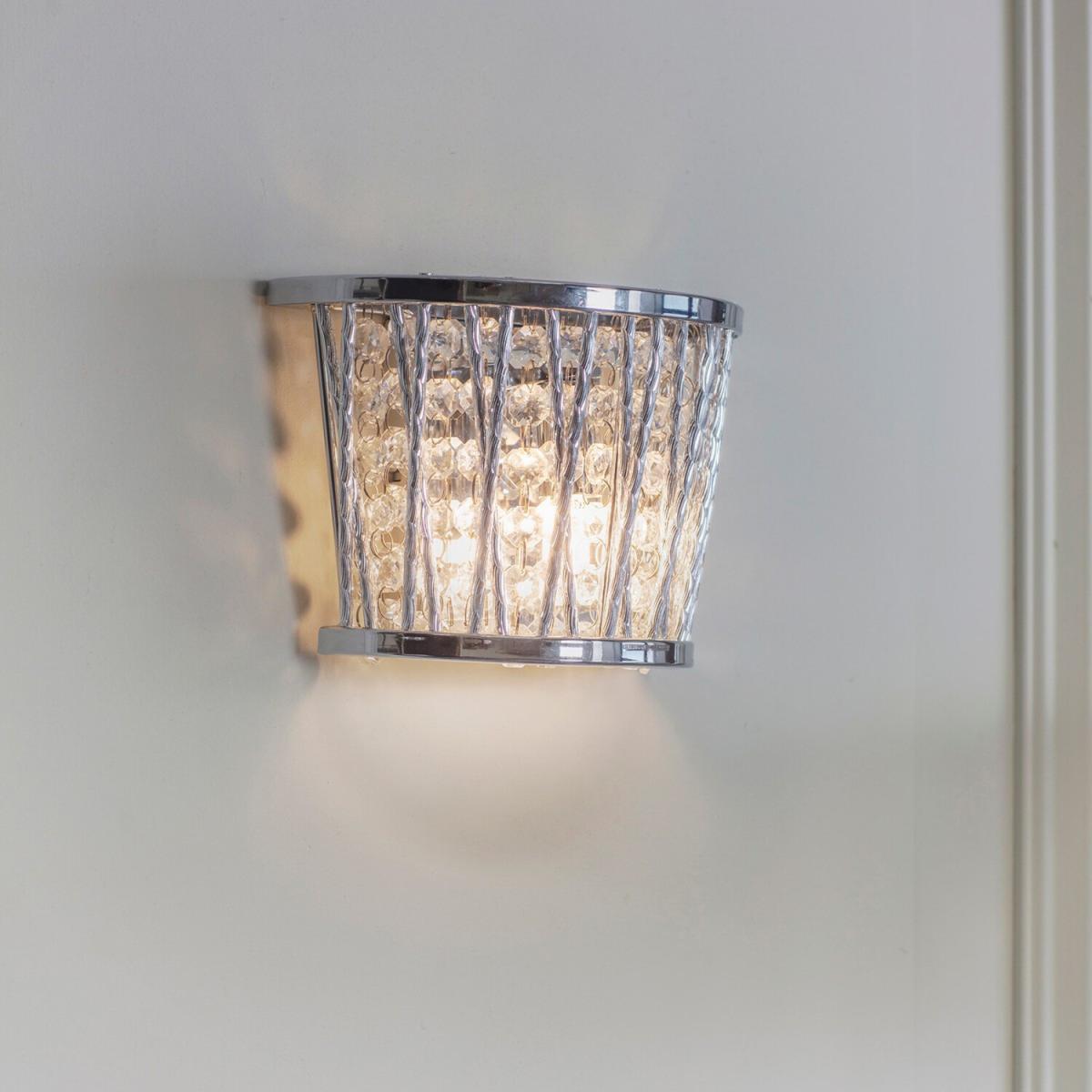 The wall light combines glitzy polished chrome metalwork with beautiful clear crystal details, creating scintillating light effects, perfect as an additional decorative touch to your classic or modern styled interior. Create the perfect illumination when paired with G9 LED lamps.