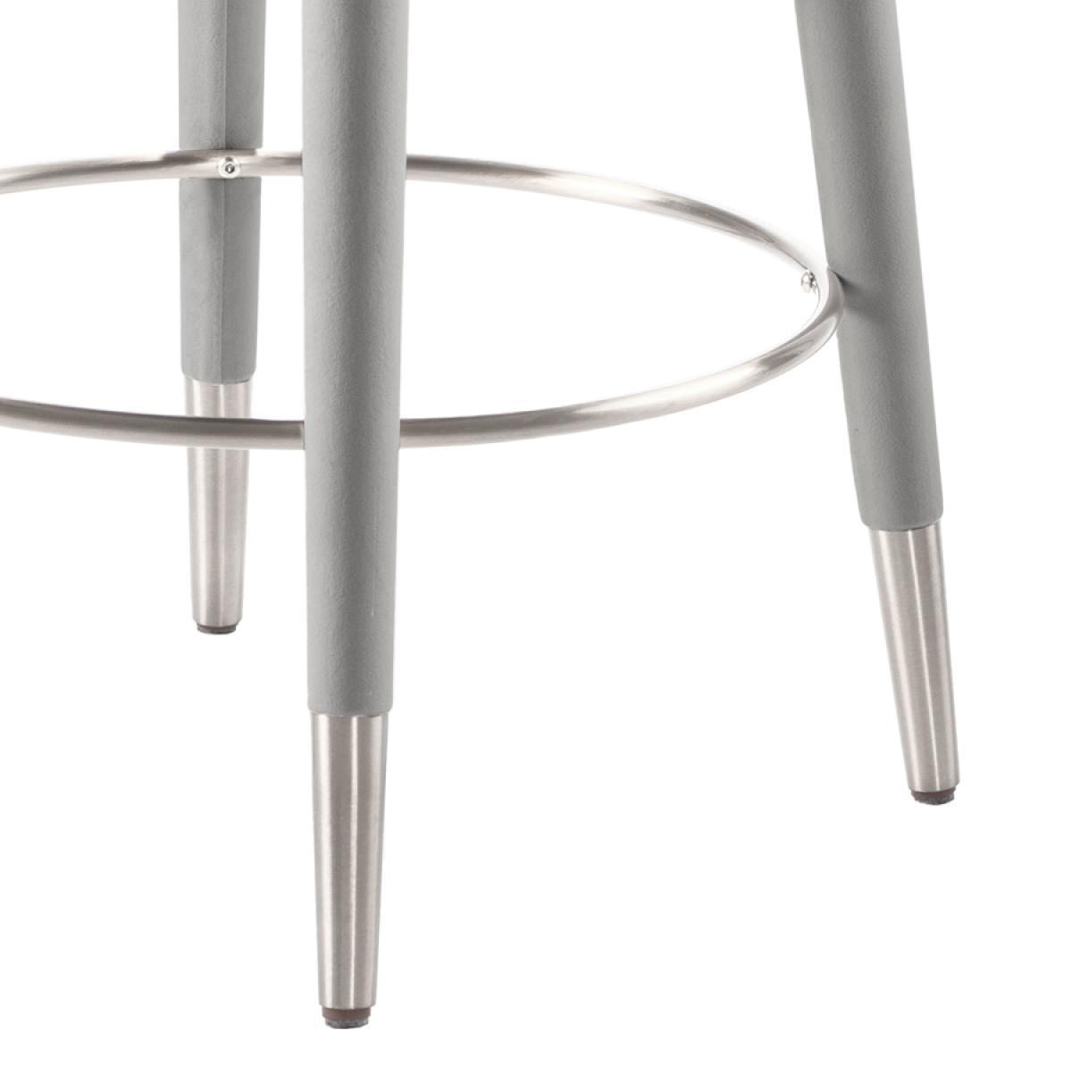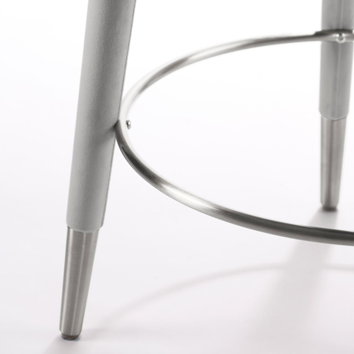 I love this grey stool for its clever mix of comfort and style. The button-tufted seat and gently curved back give just the right support, while the silver-capped legs add a subtle hint of shine. Its neutral tones work brilliantly in modern kitchens, Scandi-inspired spaces or even a pared-back glamour scheme. For practical styling, pair it with a marble or light oak island to balance the metallic detail, then introduce a few soft textures - think a woven cushion or a lightweight wool throw draped casually over the back. Keep surrounding accessories minimal so the stool’s clean lines really stand out.