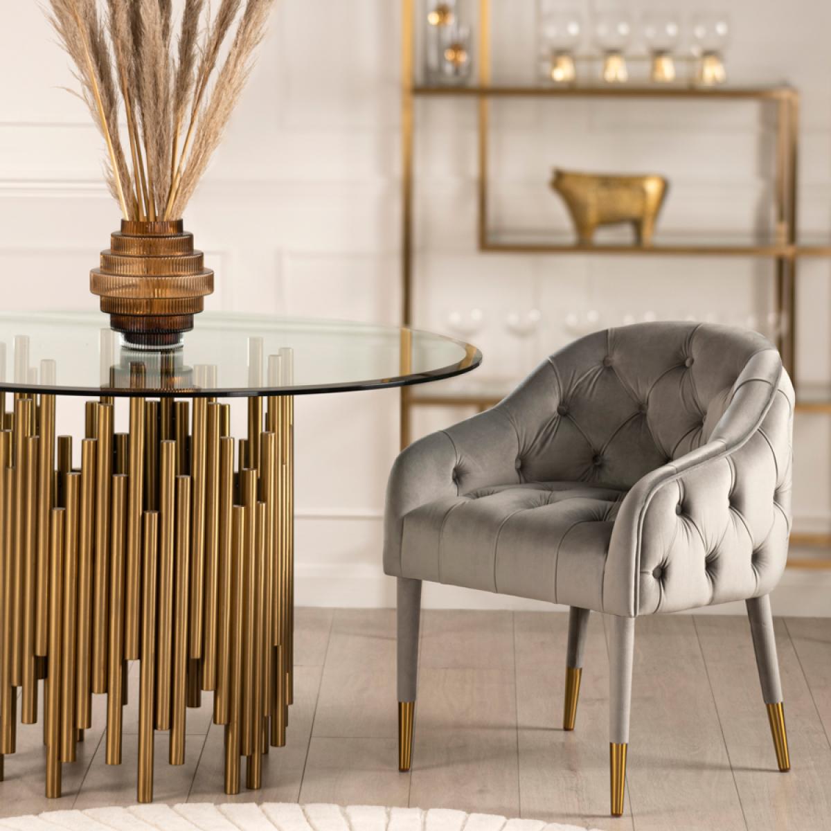Sophia Dining Chair - Grey - Brass Caps