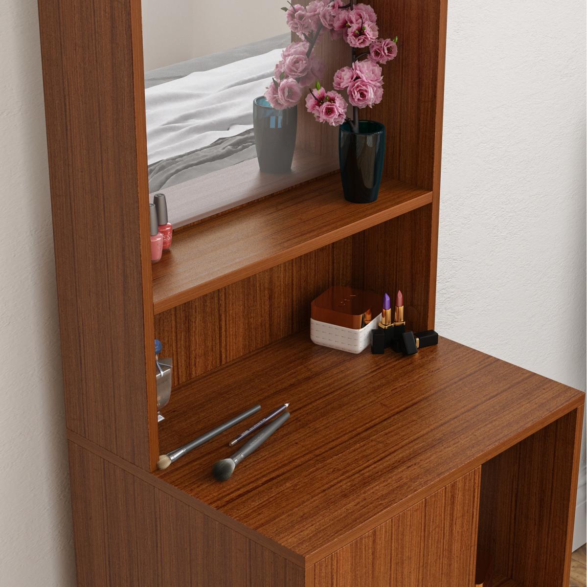 This stunning new product with a modern stylish design, the Sophia Dressing Table comes in various colours. This beautifully crafted dressing table is sure to make a big impression on your bedroom. This dressing table features a rectangular mirror, two open shelves and a cabinet revealing an additional two storage shelves. The smooth tabletop of the dressing table provides space for beauty supplies and cosmetics.