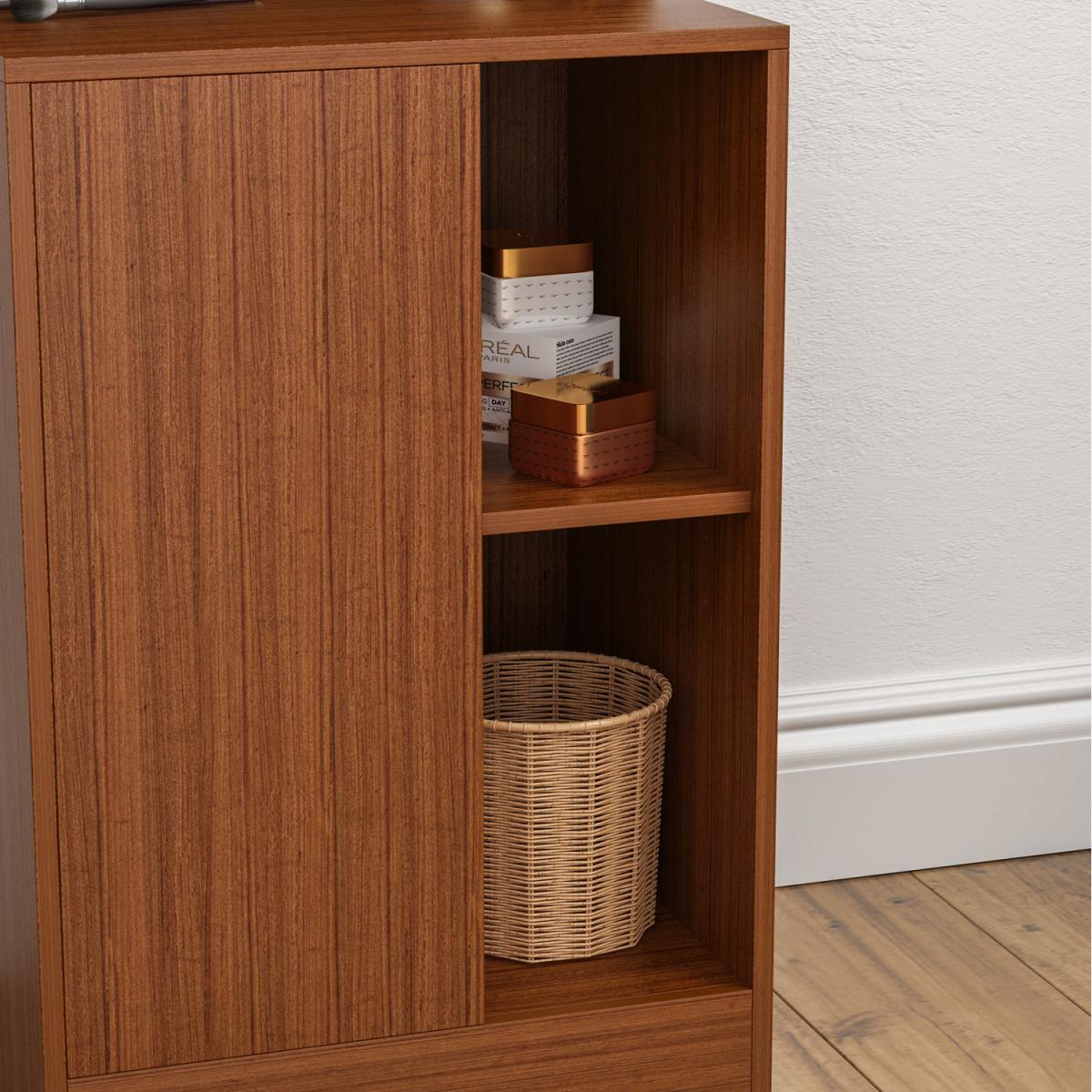 I love this dressing table for its clean, functional design and warm walnut finish that adds a touch of sophistication to any bedroom. It works particularly well in modern, Scandinavian, or minimalist interiors where simplicity and warmth are key. The mirror is a practical feature, and the open shelf offers convenient space for everyday essentials or decorative items. To style it effectively, keep the surface clutter-free with well-organised trays or organisers, and consider adding a small plant or a decorative tray for jewellery to bring a personalised touch. It’s a versatile piece that combines style and practicality without overwhelming the space.