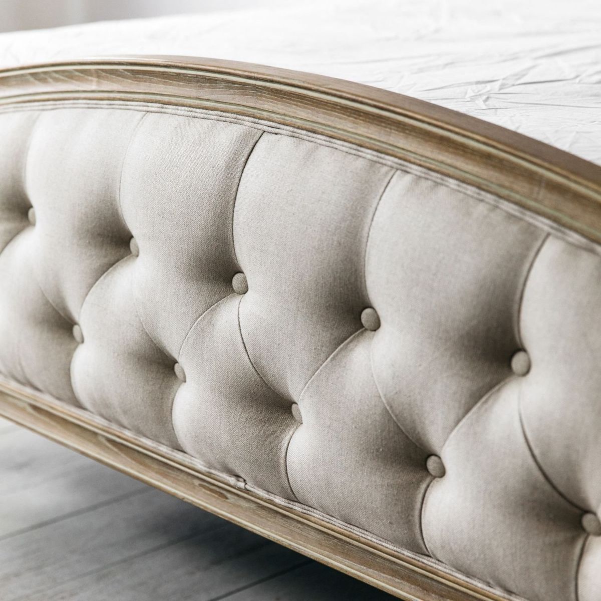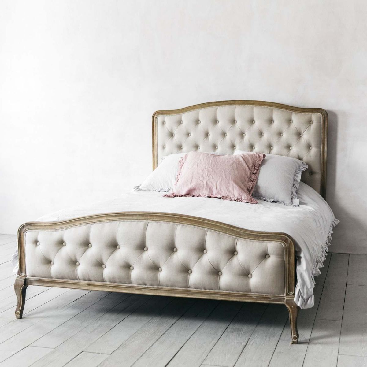I love this bed for its timeless elegance and versatile design, making it an excellent centrepiece in both traditional and contemporary bedrooms. The natural linen upholstery offers a soft, relaxed feel that enhances cosy nights, while the classic tufted headboard and frame bring a hint of luxury. It works particularly well in neutral or pastel colour schemes, but can also be styled up with bold cushions and throws for a personalised touch. Practical styling tips include pairing it with crisp, layered bedding and adding decorative pillows to add texture and depth. Given its elegant shape and neutral hue, it’s flexible enough to fit into various interior styles from shabby chic to modern classic.