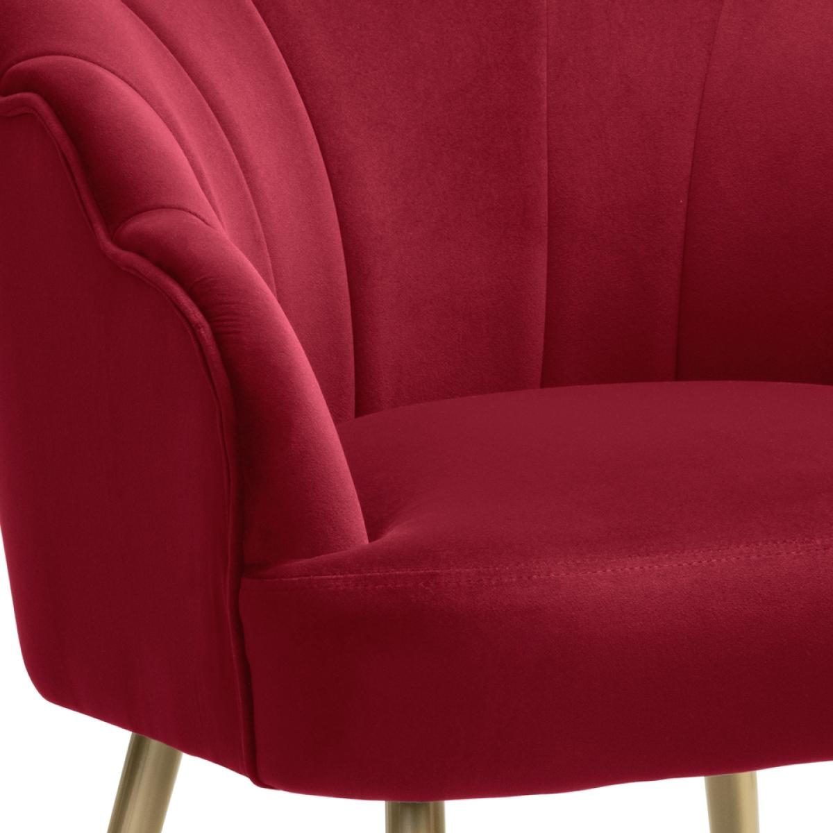 Graceful, glamorous, gorgeous. Show-stopping Sophia is as plush as they come. If you're looking for an accent chair that will wow, this is the one for you. Its impressive standout scallop back will cocoon you in comfort. Sophia is elegantly perched on gold-effect metal legs and upholstered in a sumptuously soft, rich raspberry velvet fabric. Find a place for this stunning chair - your home will thank you.