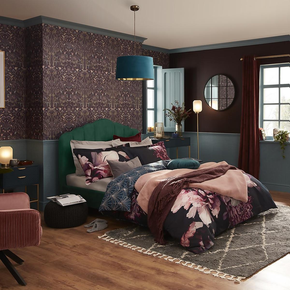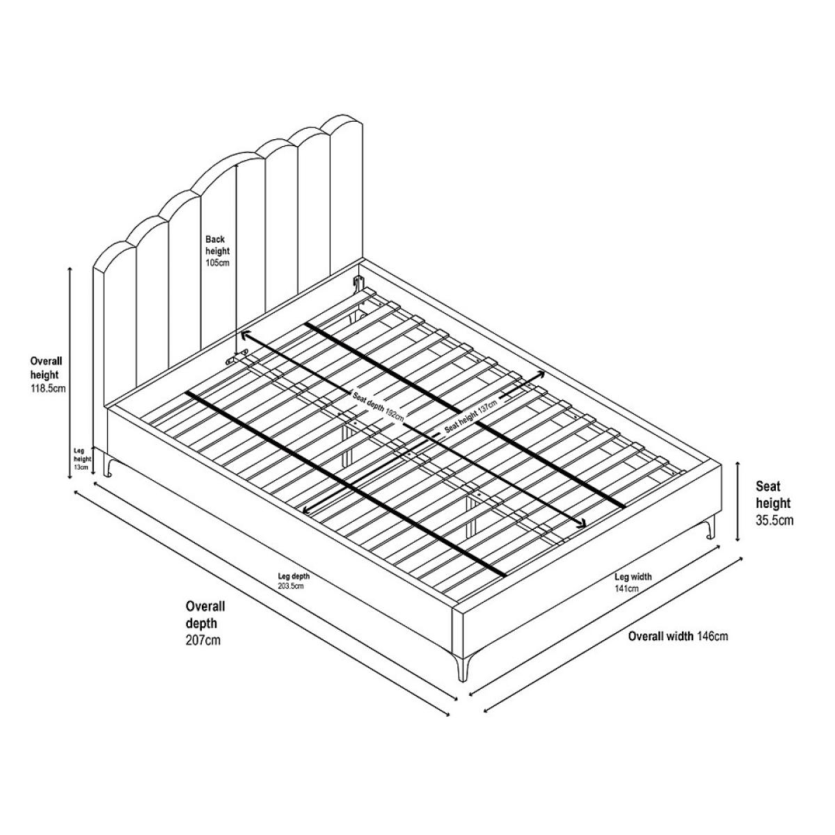 Graceful, glamorous, gorgeous. Show-stopping Sophia is as plush as they come. If you're looking for an bed frame that will wow, this is the one for you. With its impressive standout scallop headboard, Sophia is elegantly perched on gold-coloured legs and upholstered in a sumptuously soft emerald velvet fabric.
