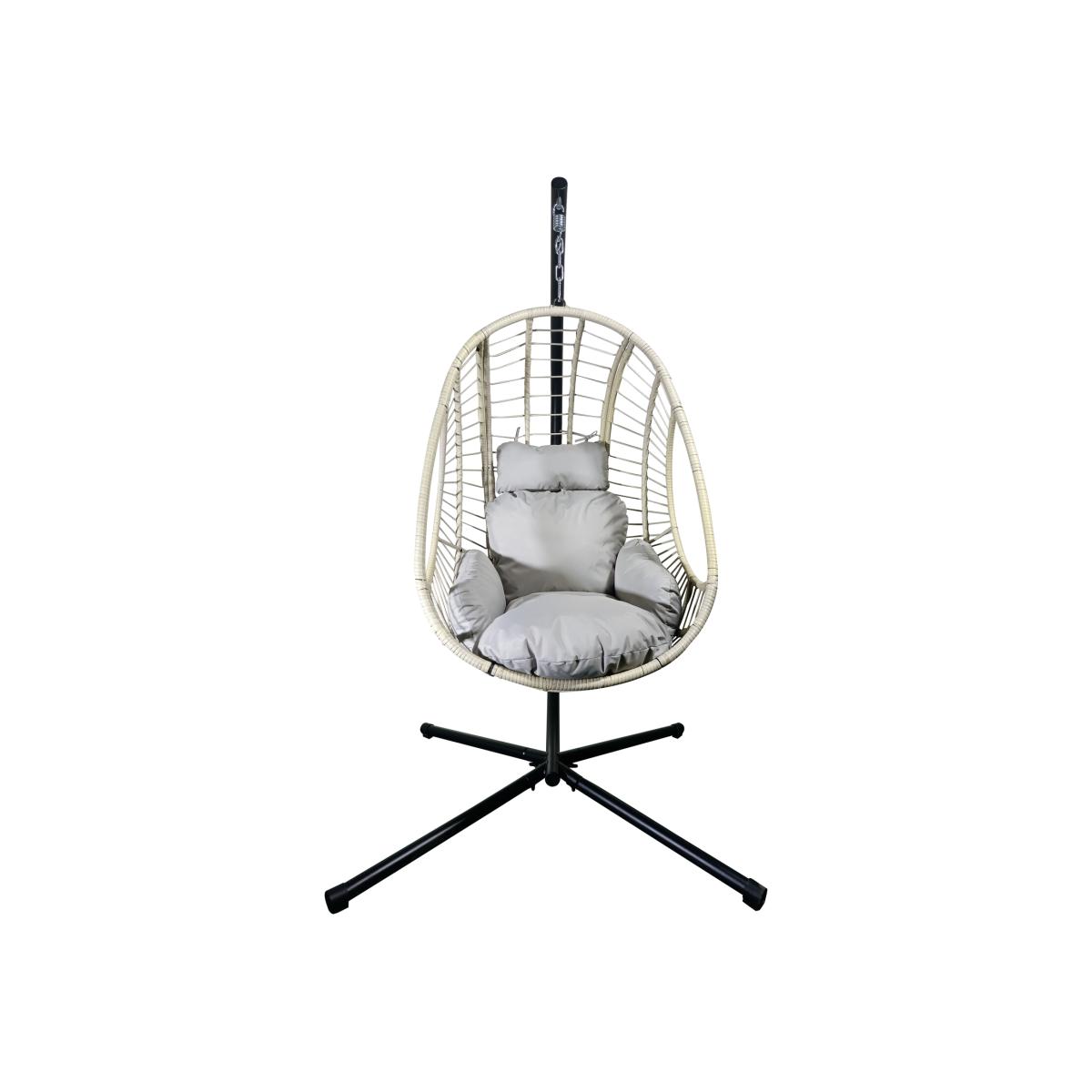 This Sophia Single Rattan Hanging Chair is made with a powder-coated metal frame and rattan resin wickers, ensuring that it can safely accommodate an adult. Additionally, it includes a safety strap for added security. The thick cushion and headrest pillow provide ultimate comfort, while the curved back design conforms to the body's natural shape. The KD feature allows for easy storage, making it a convenient addition to any space. This hanging chair is perfect for outdoor use on your patio, deck, garden, yard, or porch, or indoor use in the living room or bedroom. It can also be placed near a pool or in a sunroom, making it a versatile piece of furniture. Both the rattan and metal frame can be easily wiped clean with a damp cloth, making maintenance a breeze.