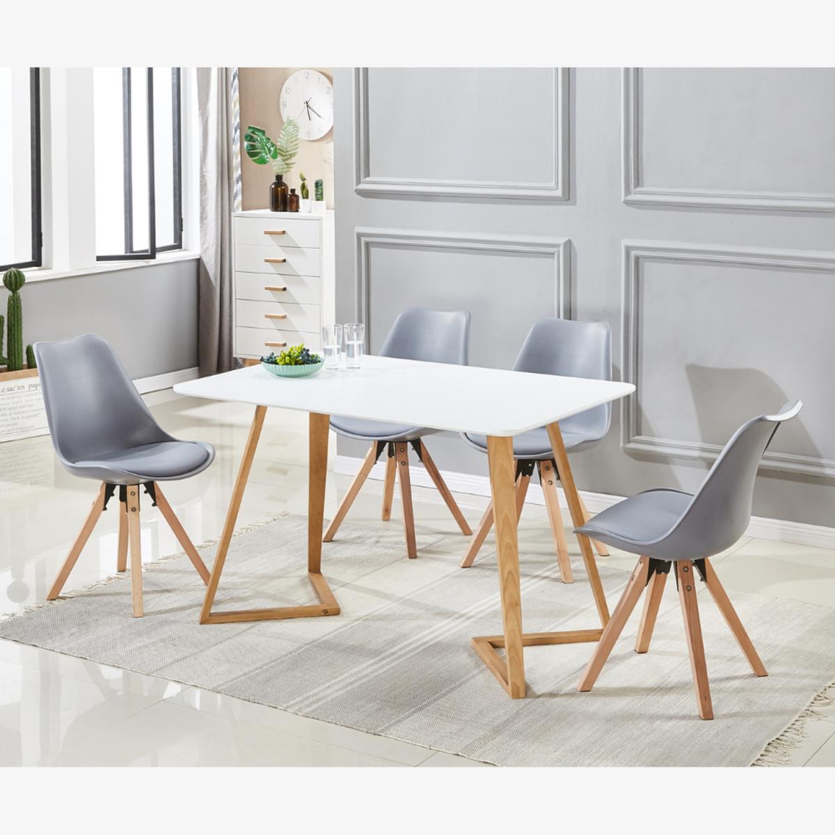 The dining set includes the Dallas table that is simplistic and has a versatile design with a twist! The legs provide, not just sturdy support but a stunning and unique design feature that will get your guests talking. The solid birch legs feature floor protectors to avoid scratching your floors, and the laminated table top is wipe-clean with a subtle satin sheen. The elegant Sophie chairs offer a practical and modern seating solution to your home. Made from premium quality materials, these chairs deliver superior comfort and durability. The moulded polypropylene body provides support while solid wooden legs ensure stability. Emulating the Mid-Century Modern furniture style, these ergonomically designed chairs feature the perfect height and a gently curved moulded plastic seat to add comfort and elegance to any room.