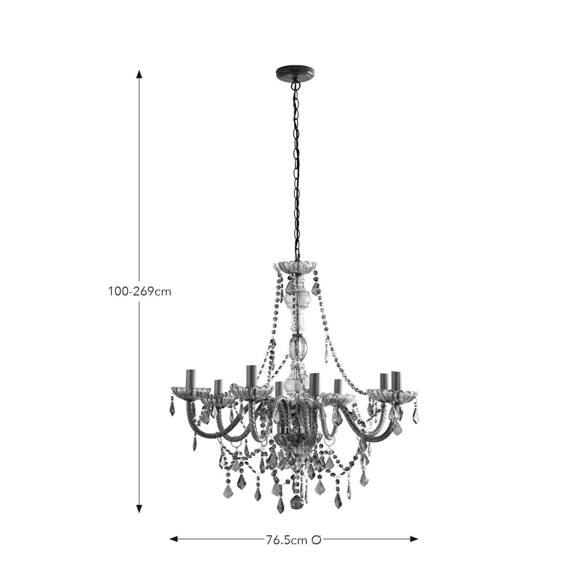 * Bold, Unique Design* Made from Durable Metal & Glass* Dimmable Compatible - Needs Dimmable Bulb & Switch* Adjustable Height - Tailored Ambience* Requires: E14 Cap Type & Candle Bulbs Meet the Sophie Robinson 8 Light Adjustable Chandelier - available in two bold colourways that feature tinted glass droplets and hidden butterflies for a truly unique centre-piece.