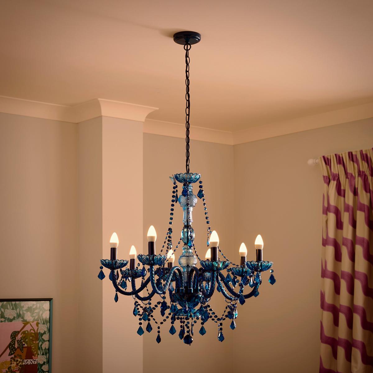 I really like the Sophie Robinson 8 Light Adjustable Chandelier because of its versatility and bold colour. It works particularly well in eclectic or contemporary interiors where a pop of colour can make a statement, especially in rooms with neutral palettes. Its adjustable arms mean you can customise the light distribution - perfect for creating ambient lighting in living rooms or dining areas. For styling, consider pairing it with vintage or modern decorative accessories to balance its bright blue tone, and hang it in a space with high ceilings to give it proper room to shine - literally. To keep the look balanced, keep surrounding furnishings simple and let the chandelier be the feature.