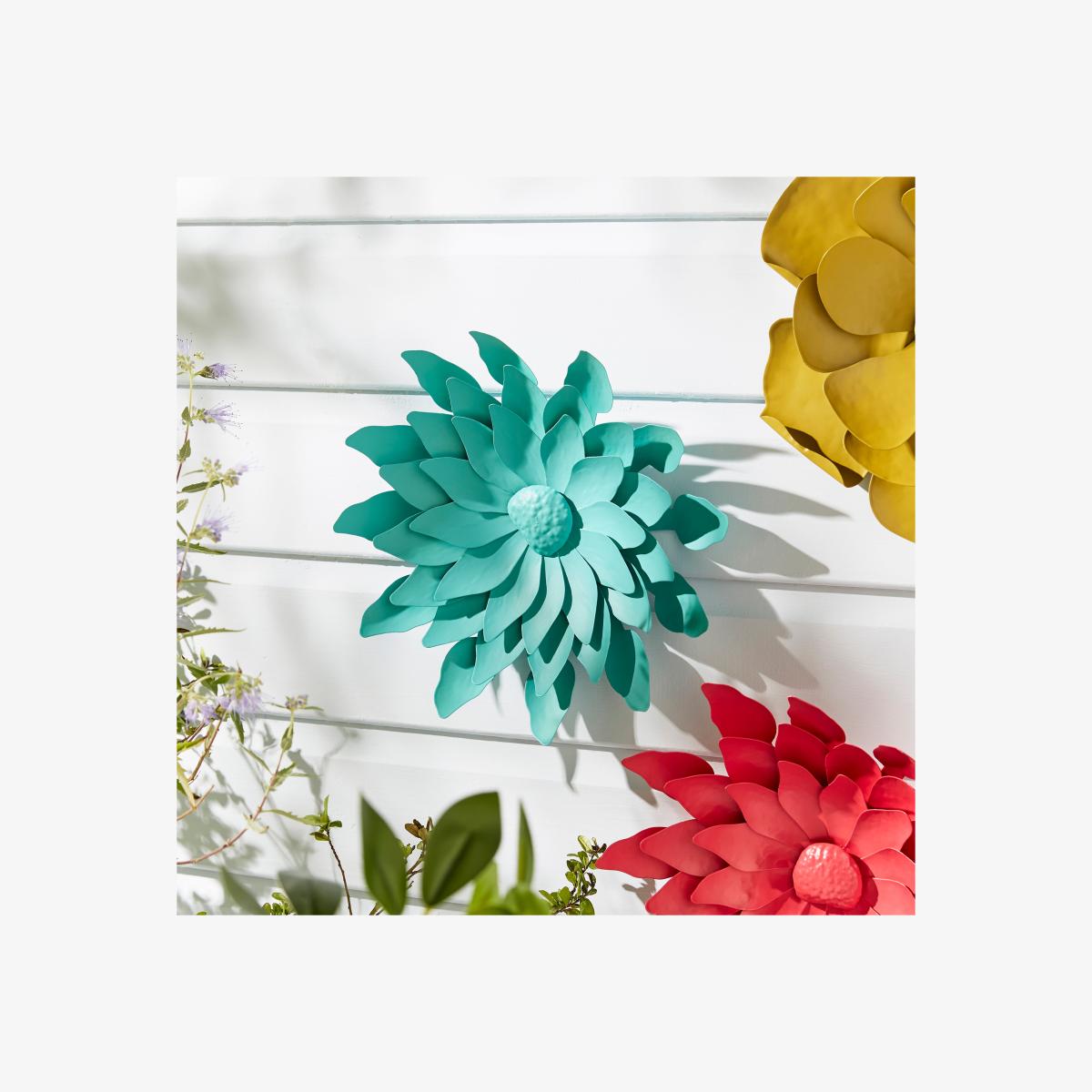 * Wall hanging decor * Bright, vibrant colours * Dahlia flower design * Durable metal * Suitable for outdoor use Fans of dahlia flowers will love this wall art featuring a bright and blousy dahlia bloom. Available in a choice of colours, simply affix to the wall in your outdoor or indoor space to add instant colour and life. Made from durable metal, it’s easy to wipe clean and maintain its brightness and would be a lovely addition to a patio or outdoor seating area.