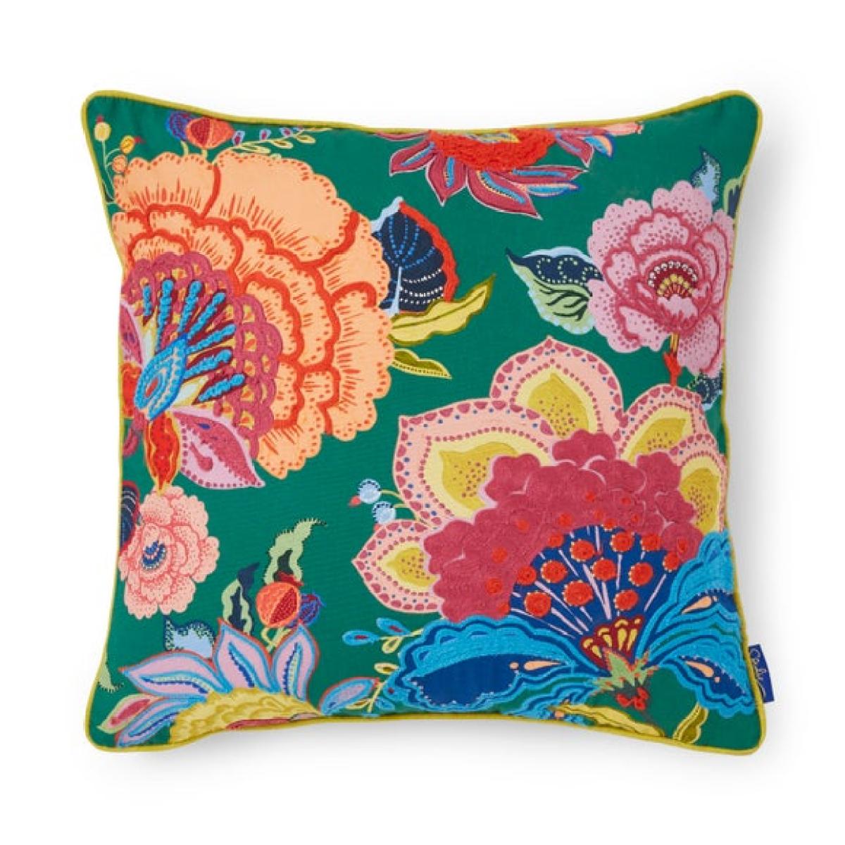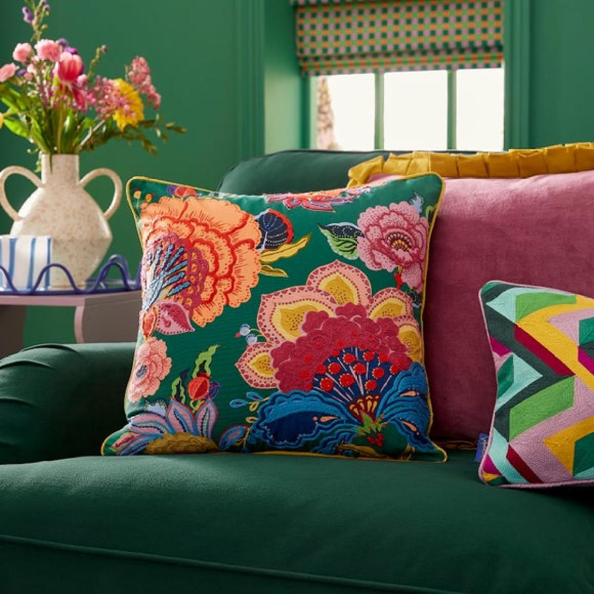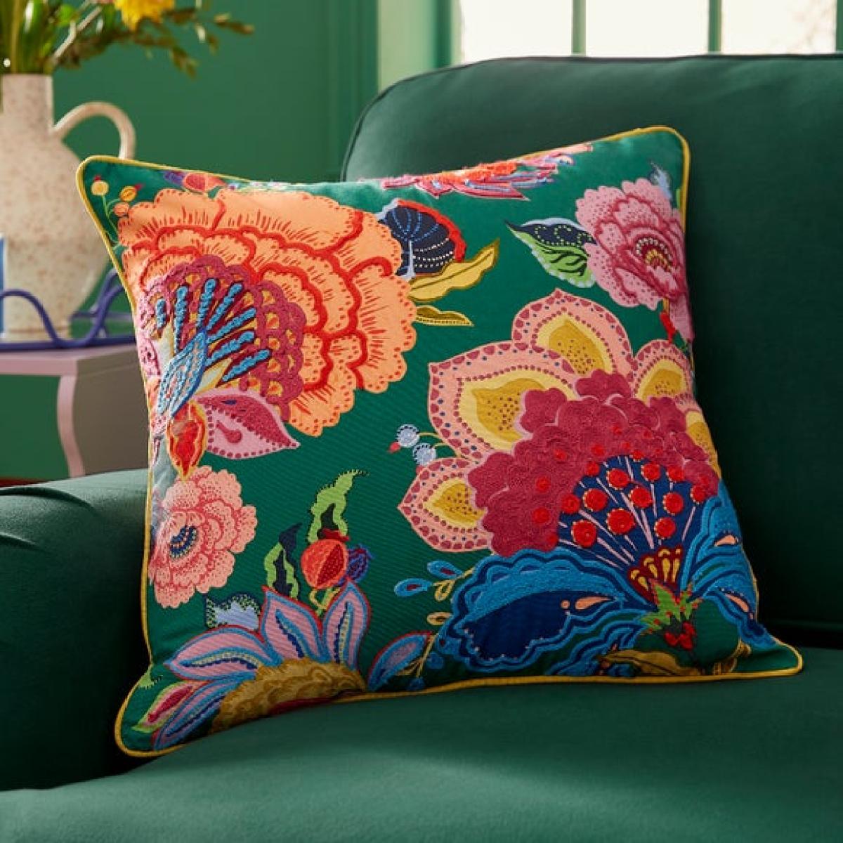 * 100% Cotton * Zip closure * Beautiful crewel work * Machine washable Designed in collaboration with Sophie Robinson, this cushion is bursting with bold colour and stunning crewel embroidery. Made from 100% cotton with a zip closure and fully machine washable, it brings maximalist joy to any space.