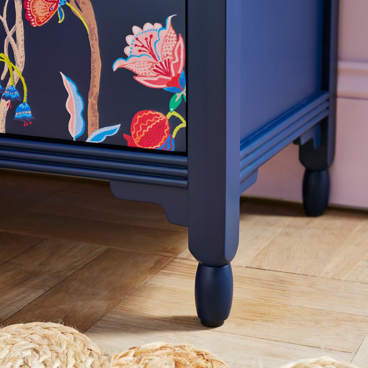 I’m a big fan of the Joylene console for its compact, versatile shape and hand-painted floral detail on a deep navy ground. It slots straight into contemporary, eclectic or even period hallways, especially when you pair it with warm neutrals or a contrasting accent wall. For styling, keep accessories simple: a slim mirror or framed print above, a neat ceramic tray for keys and a single bud vase or small plant to balance the pattern without overwhelming it.