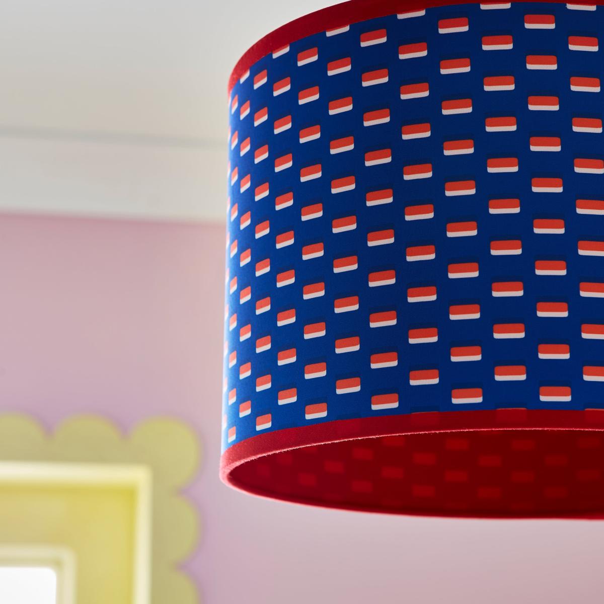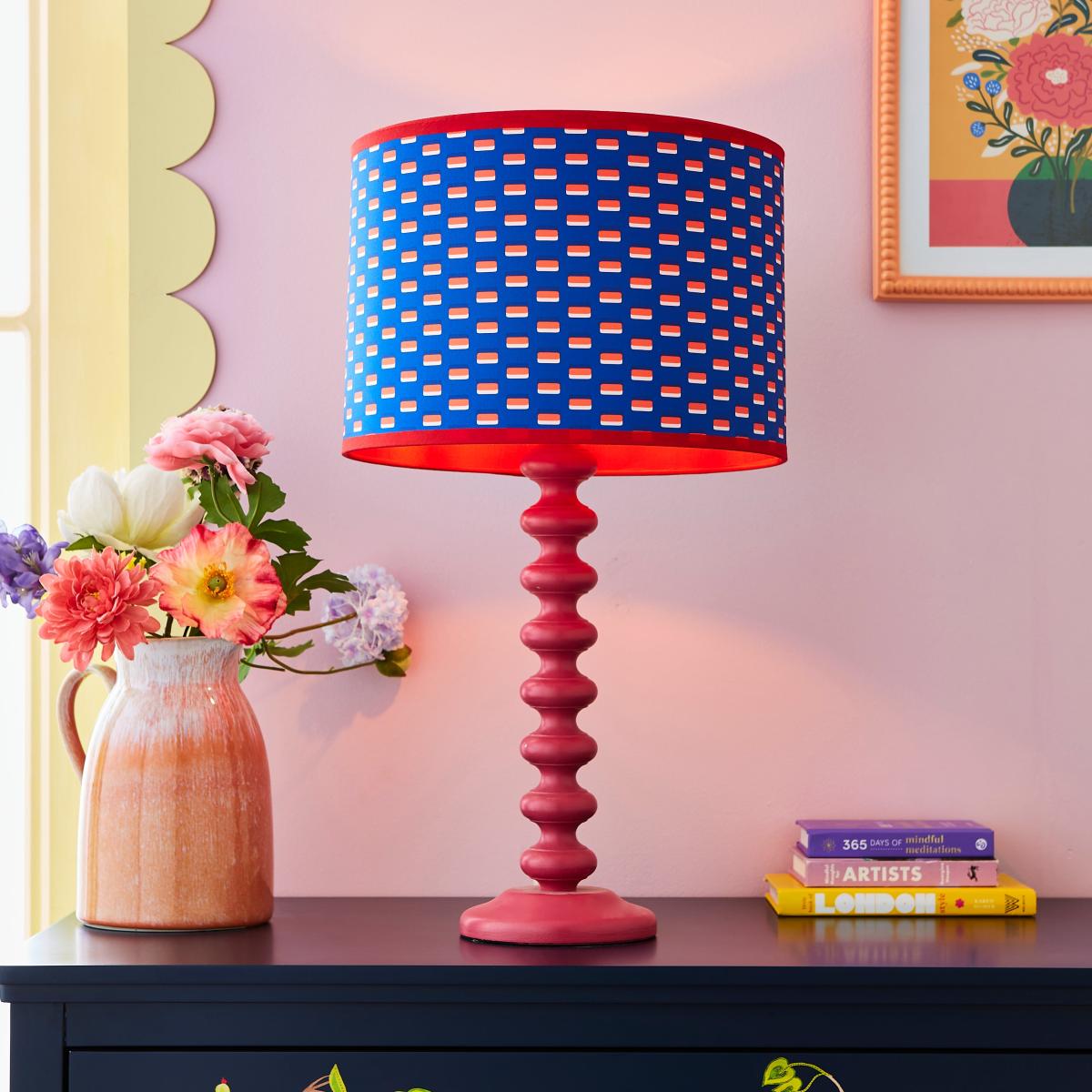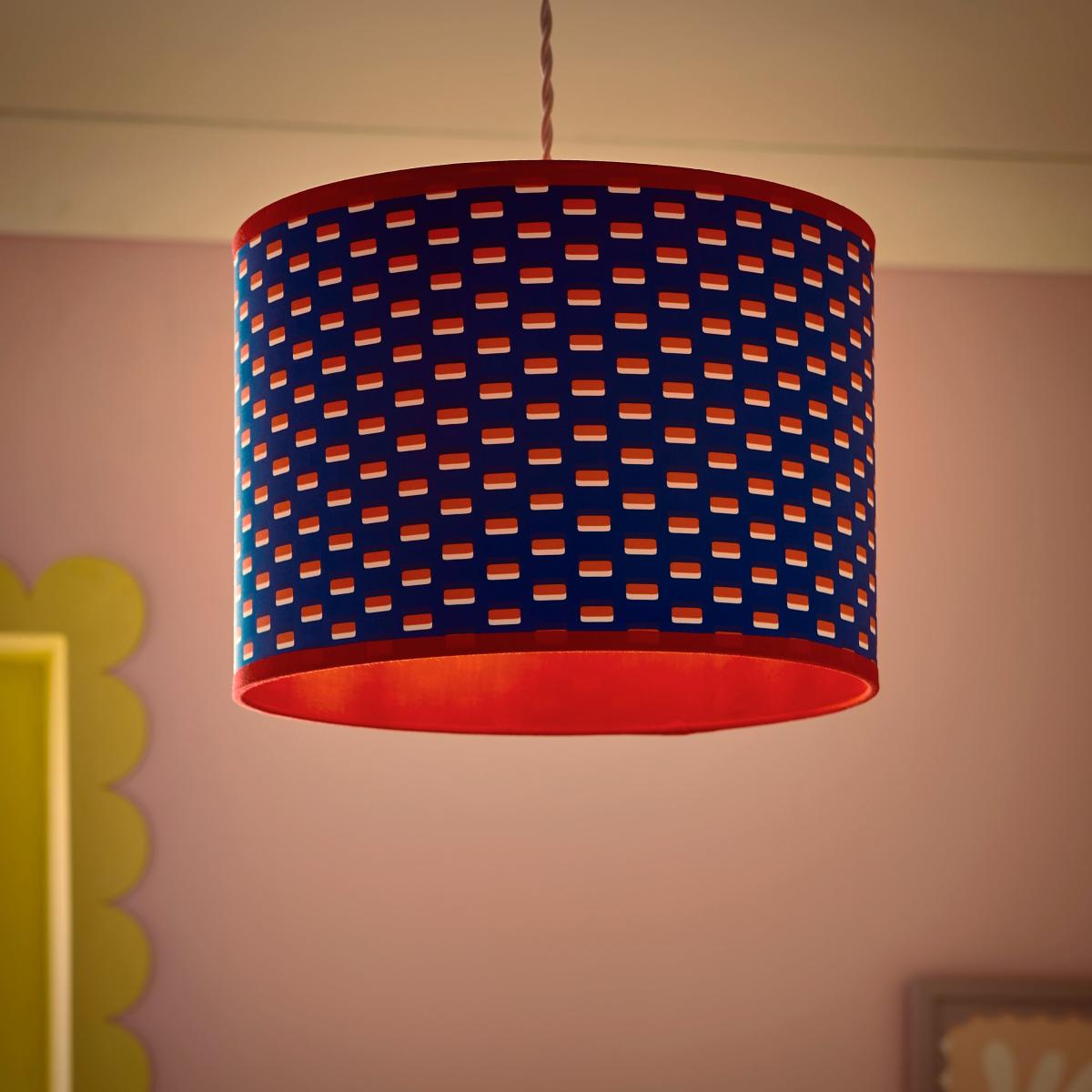 I love this lampshade for its playful yet modern design, making it a versatile piece that can add a pop of colour to both contemporary and eclectic interiors. Its bold pattern works particularly well in children’s rooms, creative living spaces, or even as a statement piece in a more neutral scheme. To style it effectively, consider pairing it with understated lamp bases to let the shade’s design stand out, or combine it with coordinated accent colours in accessories around the room. Practical tips include ensuring the colour palette of your space complements the shade’s vivid hues, and choosing a slightly larger size for statement lighting in bigger rooms to truly let it shine.
