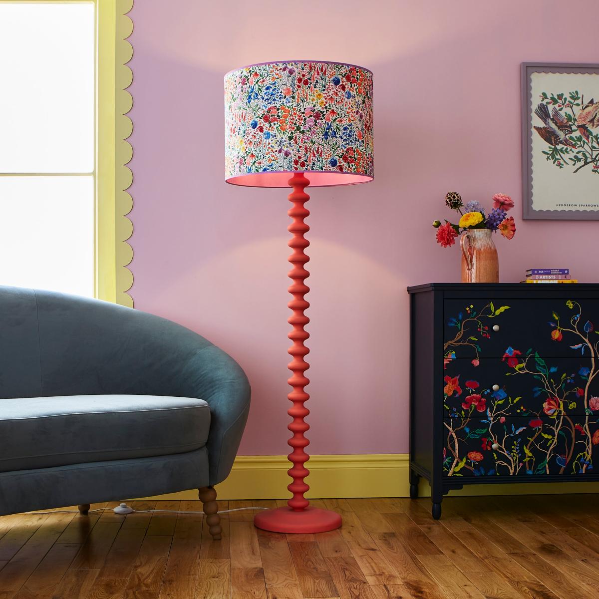 I love the Sophie Robinson made to order Sunshine Flowers lamp shade for its vibrant and playful design, perfect for adding a pop of colour to a variety of interiors. It works well in eclectic or bohemian spaces, where bold patterns and lively hues are celebrated, but can also brighten up a neutral room as a statement piece. For styling, I recommend pairing it with simple, understated lamps bases and keeping surrounding decor minimal to let the shade be the focal point. It’s a versatile choice that brings a cheerful and personalised touch to both kids’ rooms and more whimsical living spaces.