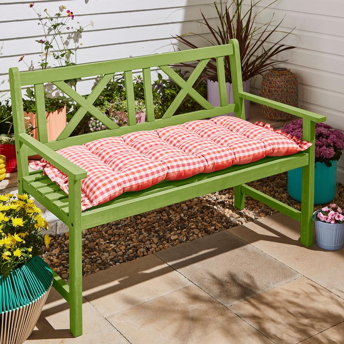 * 100% Cotton * Co-ordinating range options for layering * Soft Polyester fill Bring electric luxury to your outdoor space with Sophie Robinson’s Frilled Bench Pad. Beautifully crafted from 100% cotton with a soft polyester fill, it offers the perfect combination of softness and support for those long sunny afternoons. Lay out in the sun with a book in this rich softness. The classic picnic plaid design, paired with a delicate frilled edge, brings a charming and feminine touch to your bench or garden seating. For a cohesive aesthetic, explore the coordinating range options and mix and match to fit your own personal style. Whether you’re enjoying a family picnic or relaxing in the garden, this bench pad makes outdoor living plush and fun.