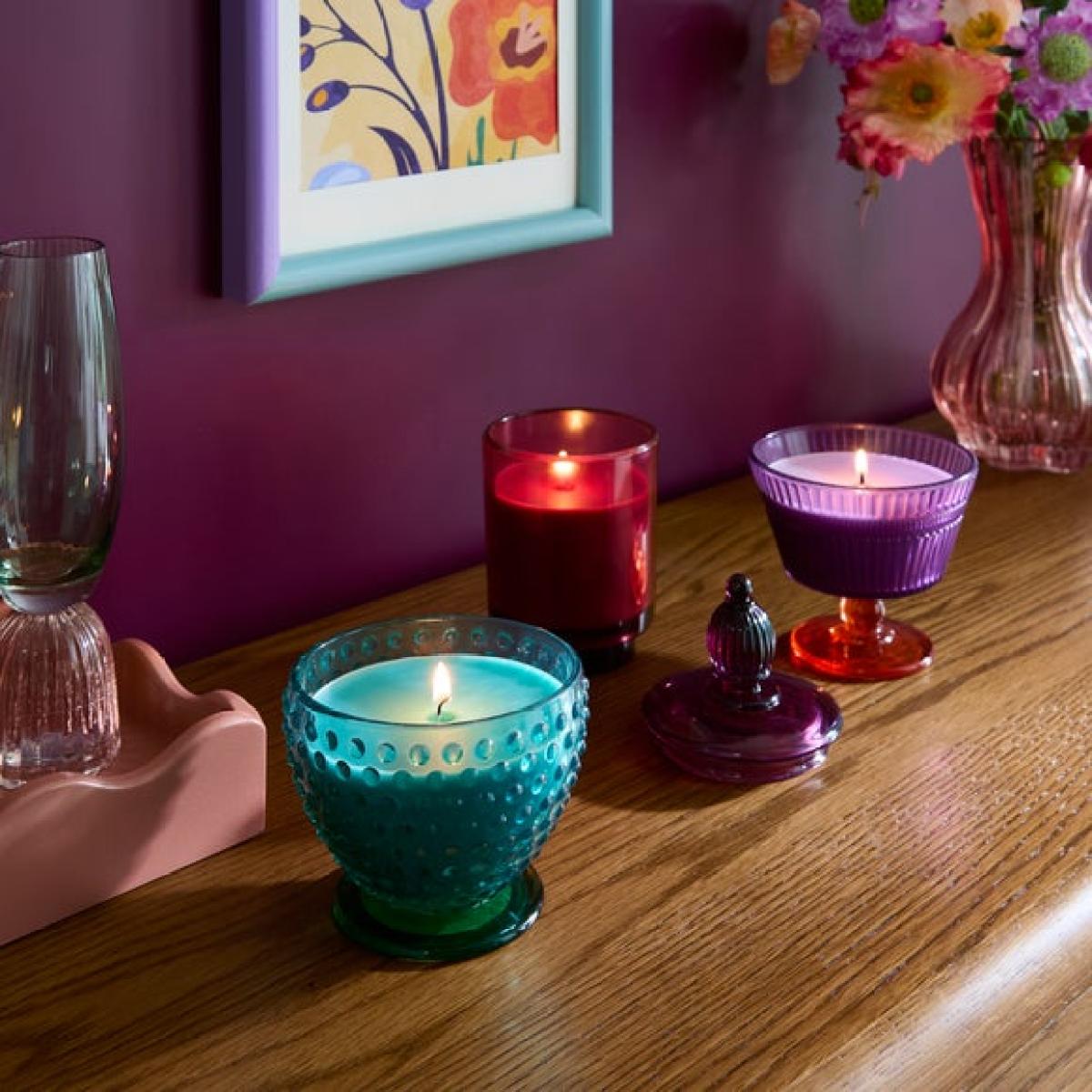 The Sophie Robinson Wanderlust candle is a lovely addition for creating a cosy yet elegant vibe in any interior. Its vibrant turquoise colour and textured glass make it a real statement piece, perfect for adding a pop of colour to neutral palettes or enhancing boho and eclectic settings. I love pairing it with other matte ceramics or natural textures like woven baskets and wooden trays to keep the look relaxed and inviting. For practical styling, position it on console tables or open shelves, ideally amid other decorative objects to create visual interest. Just remember, it’s not only about looks - it's a functional piece that brings warmth and an inviting scent, making it a versatile choice for both living rooms and bedrooms.