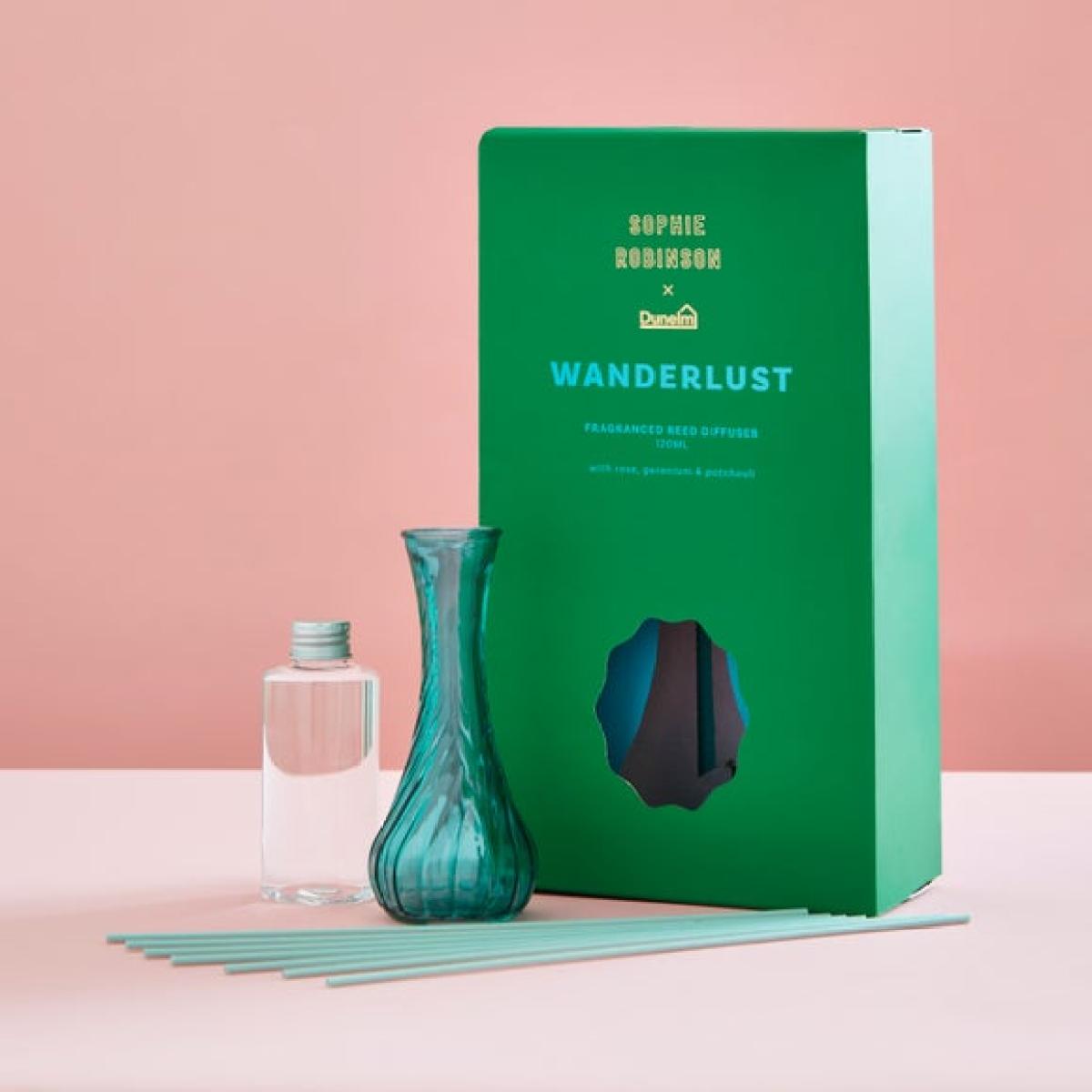 * Bold floral scent * 120ml diffuser * Decorative glass vessel * Coloured fibre reeds * Lasts up to 10 weeks Let your space tell a story with the Sophie Robinson Wanderlust Diffuser. A bold blend of rose, geranium and patchouli fills the air with warmth and a hint of bohemian glamour. Housed in a striking green ribbed glass vessel with colourful reeds, it’s as much a statement piece as it is a scent. The fragrance lingers for up to 10 weeks, offering a long-lasting escape from the everyday. Ideal for adding a touch of personality to any room.