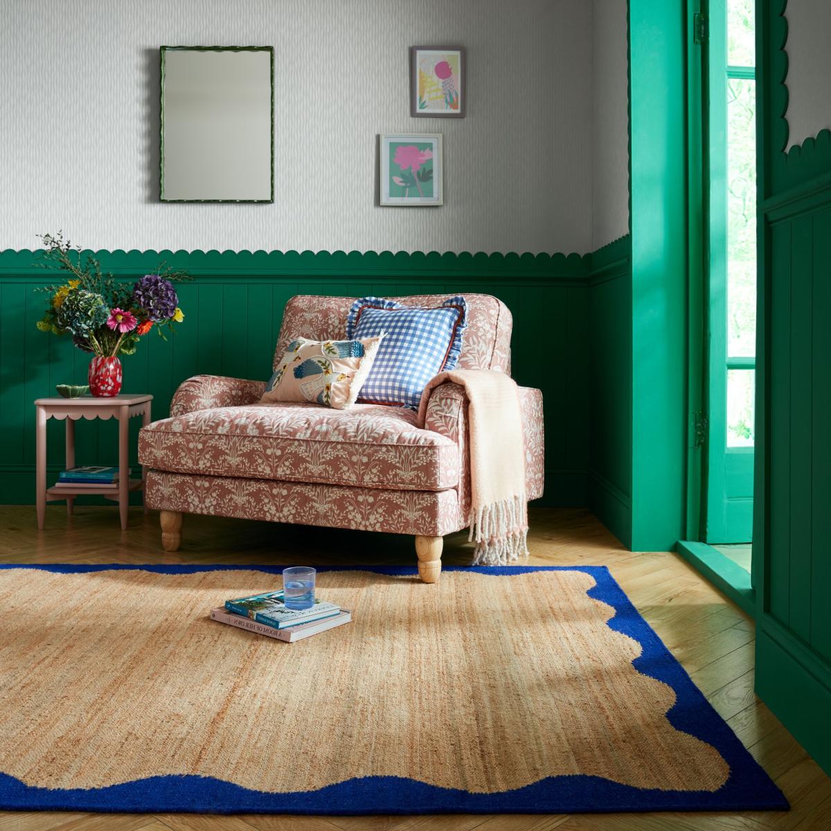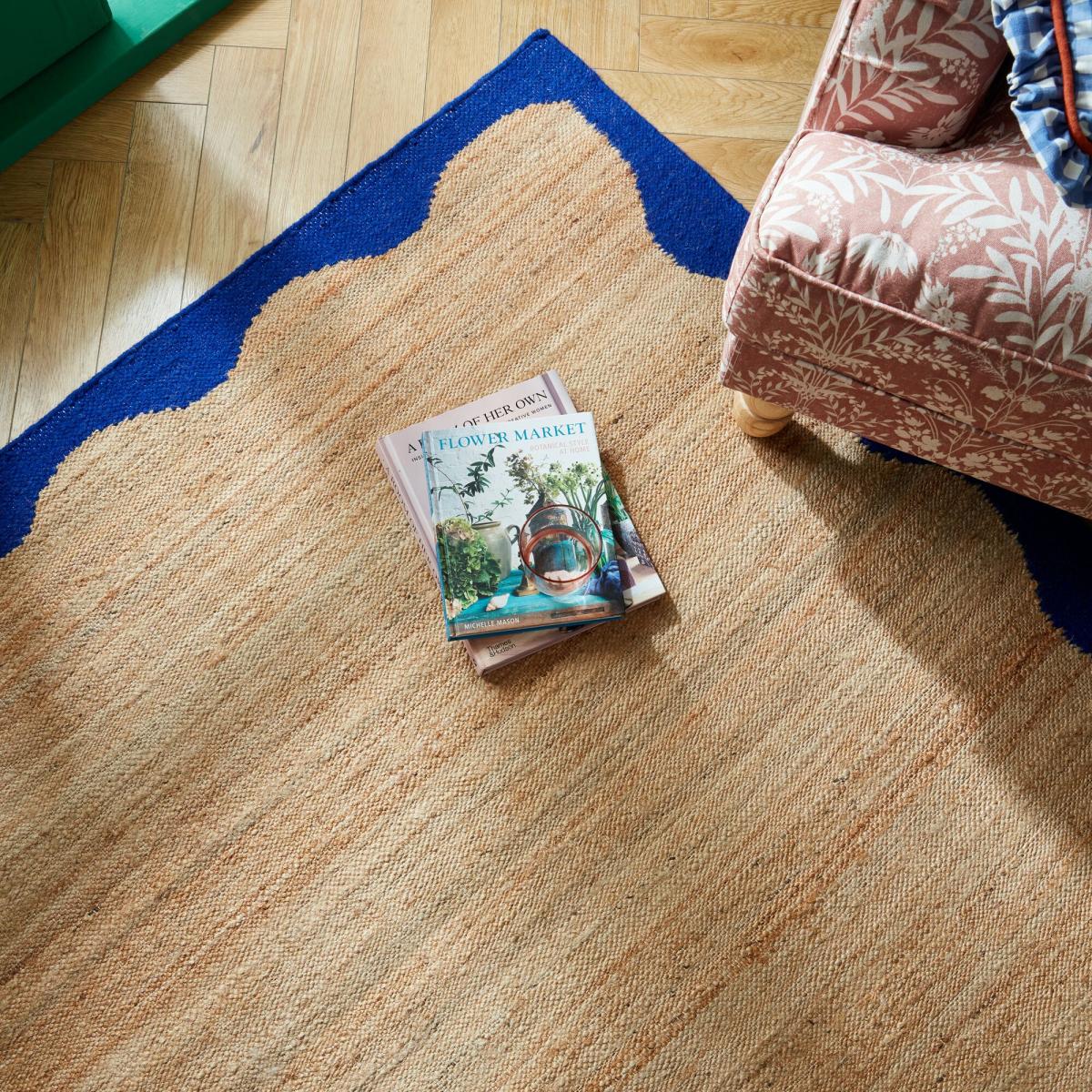 * Colourful Scalloped Border* Modern Design* Durable Jute Pile It's time to shine with the Sophie Robinson Wave Jute Rug! Adding a bright pop of colour to your home has never been so easy. This modern twist on a classic jute rug blends a vibrant scalloped detail with long lasting, durable jute pile. The modern border edge can be used to frame a cosy living space, or family dining area. The rug pictured is 160cm x 230cm. Care Instructions: Natural fibre rugs such as jute, sisal and seagrass are crafted from plant-based materials, so each one is unique and naturally beautiful. Unroll your rug and leave for 24 hours during first use. Maintain your Jute rug by shaking to remove trapped dirt and debris. Vacuum regularly with a nozzle attachment. Cut any loose fibres with scissors, do not pull. Avoid water and cleaning products, as they could damage or fade the rug. For accidental spills blot immediately with a dry white cloth, do not rub as this may stain the fibres. Rotate every few months to prolong the life of your rug.